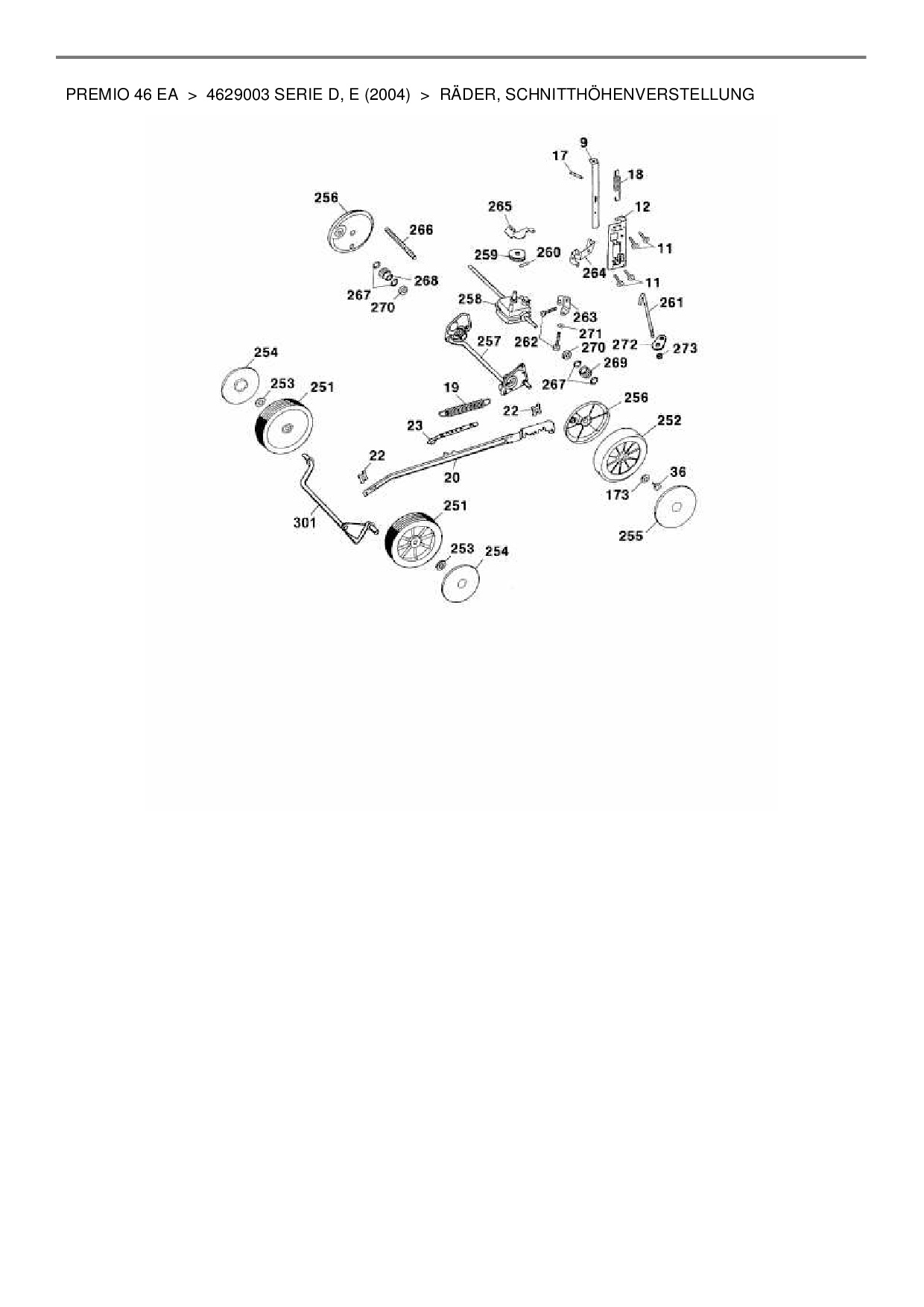 Ersatzteile für Elektromäher mit Antrieb Wolf-Garten Premio 46 EA aus der Zeichnung Räder, Schnitthöhenverstellung: