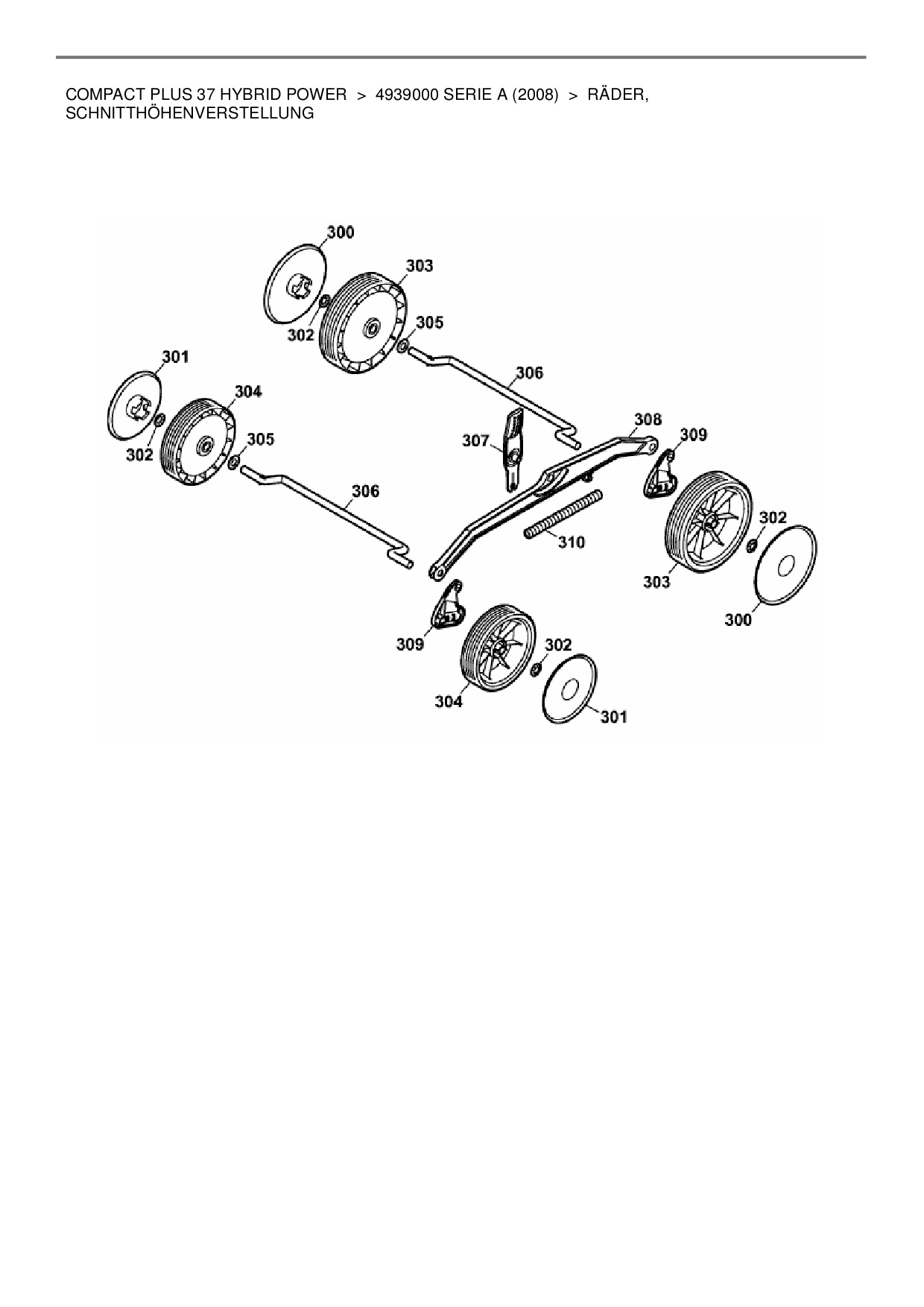 Ersatzteile für Hybridmäher Wolf-Garten Compact plus 37 Hybrid Power aus der Zeichnung Räder, Schnitthöhenverstellung: