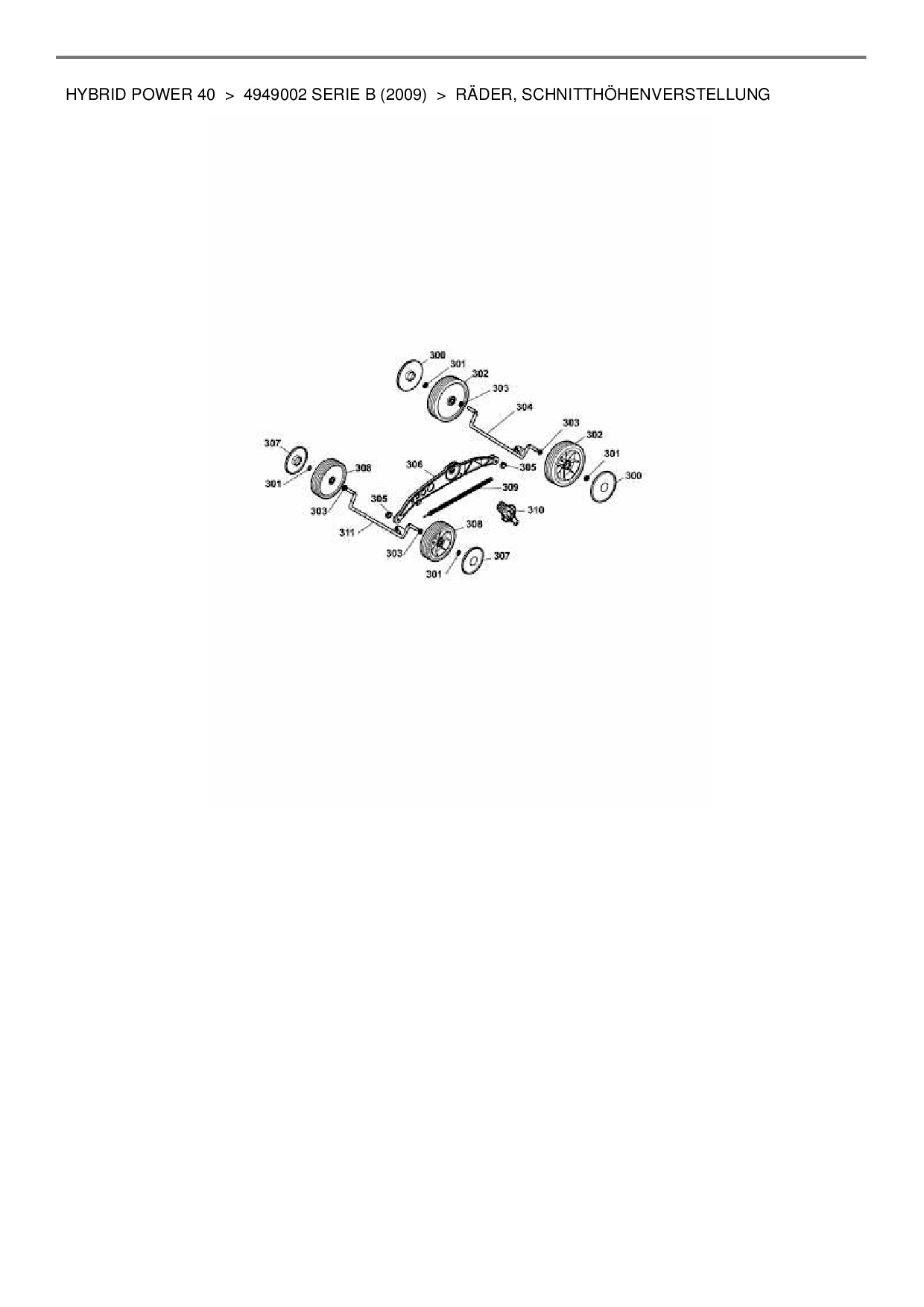 Download Ersatzteil-Zeichnung Wolf-Garten Hybrid Power 40 Zeichnung Räder, Schnitthöhenverstellung (PDF-Format)