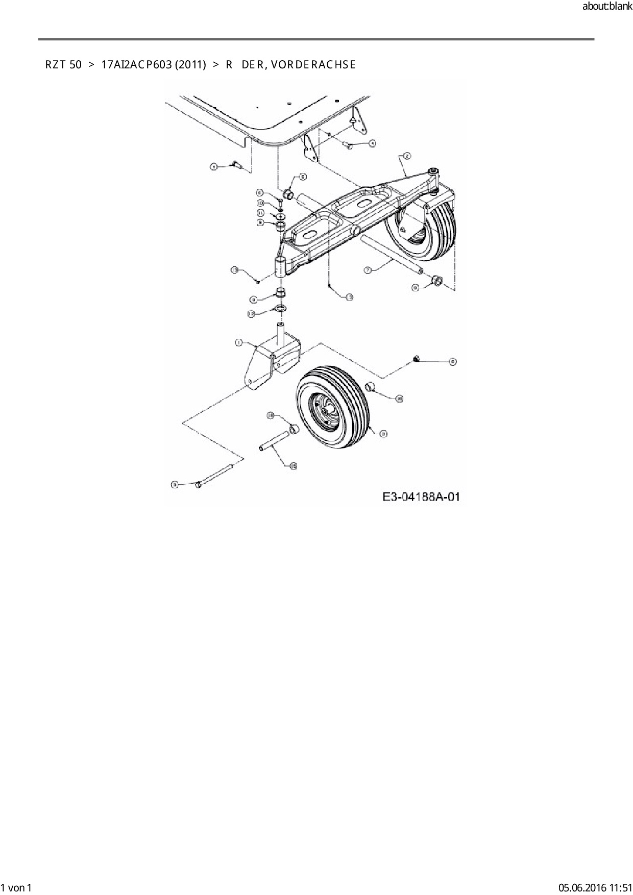 Ersatzteile für Zero Turn Cub Cadet RZT 50 aus der Zeichnung Räder, Vorderachse: