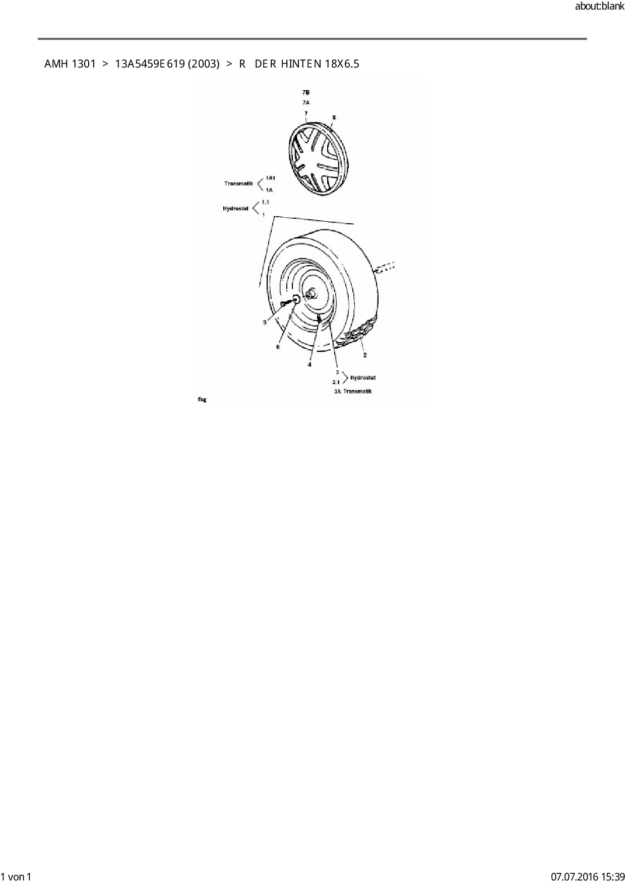 Ersatzteile für Rasentraktor FLEURELLE AMH 1301 aus der Zeichnung Räder hinten 18x6.5:
