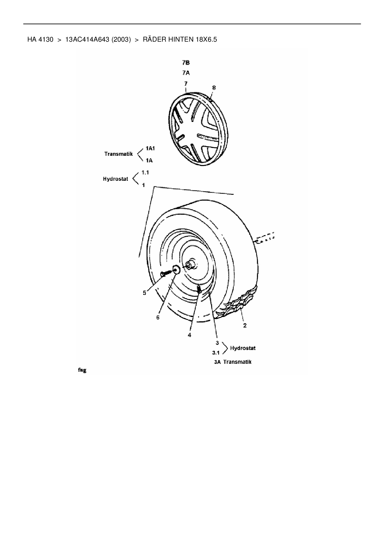 Ersatzteile für Rasentraktor Yard-Man HA 4130 aus der Zeichnung Räder hinten 18x6.5: