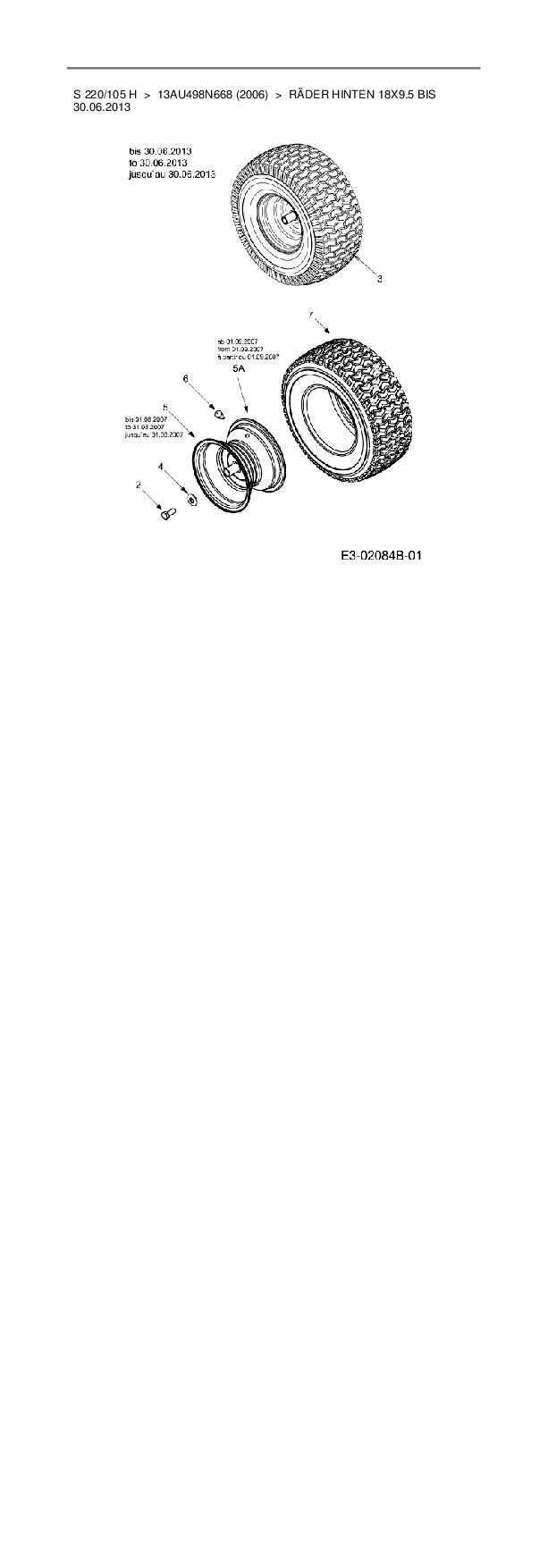 Ersatzteile für Rasentraktor Mac Allister S 220/105 H aus der Zeichnung Räder hinten 18x9.5 bis 30.06.2013: