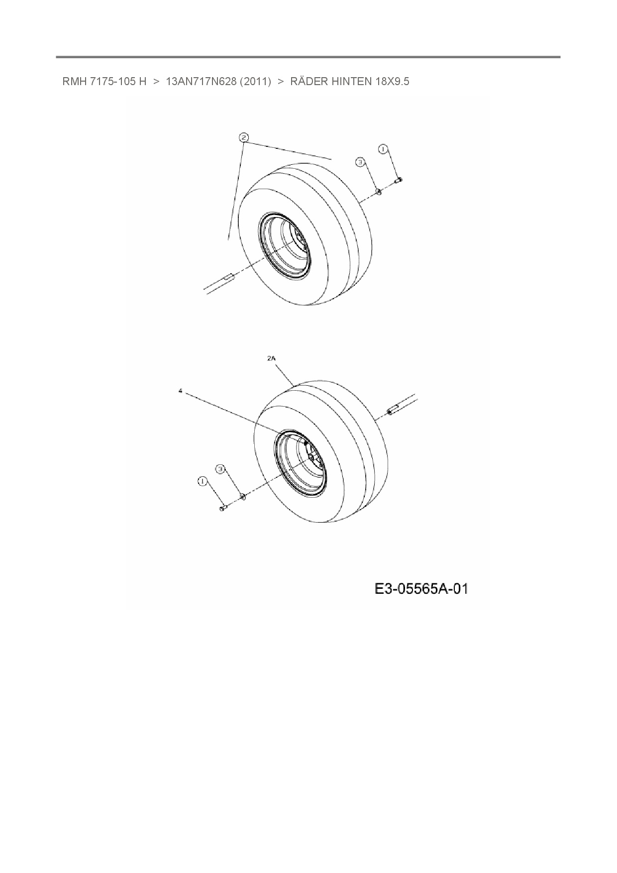 Ersatzteile für Rasentraktor Raiffeisen RMH 7175-105 H aus der Zeichnung Räder hinten 18x9.5: