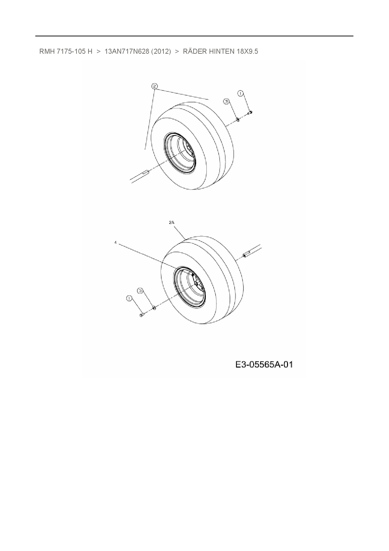Ersatzteile für Rasentraktor Raiffeisen RMH 7175-105 H aus der Zeichnung Räder hinten 18x9.5: