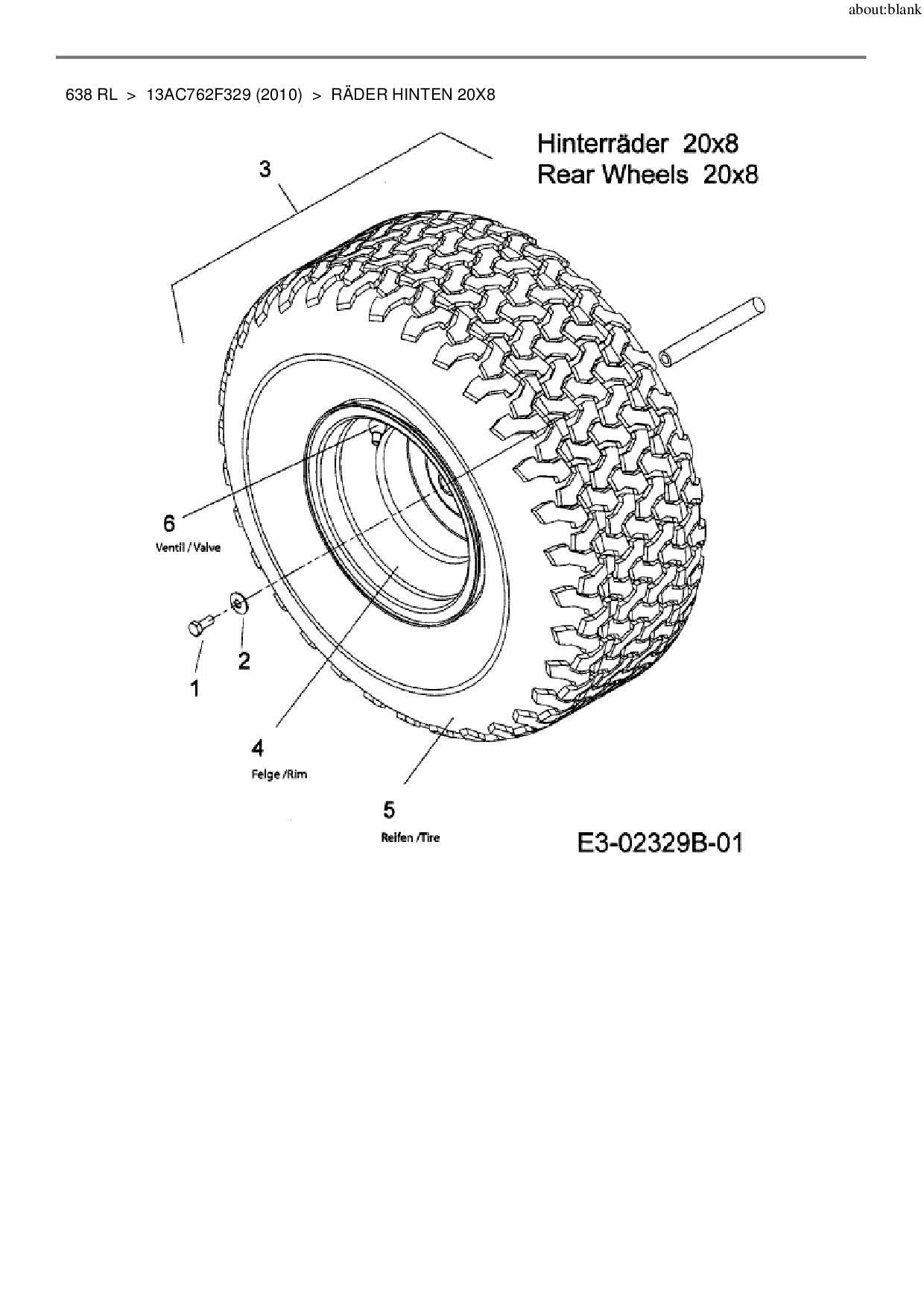 Ersatzteile für Rasentraktor MTD 638 RL aus der Zeichnung Räder hinten 20x8: