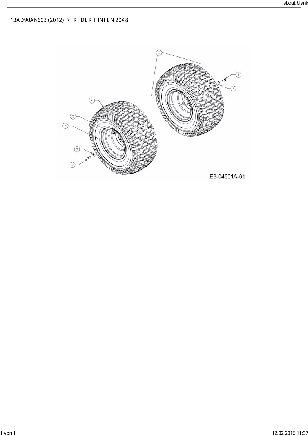 Ersatzteile für Rasentraktor Cub Cadet CC 1018 AN aus der Zeichnung Räder hinten 20x8: