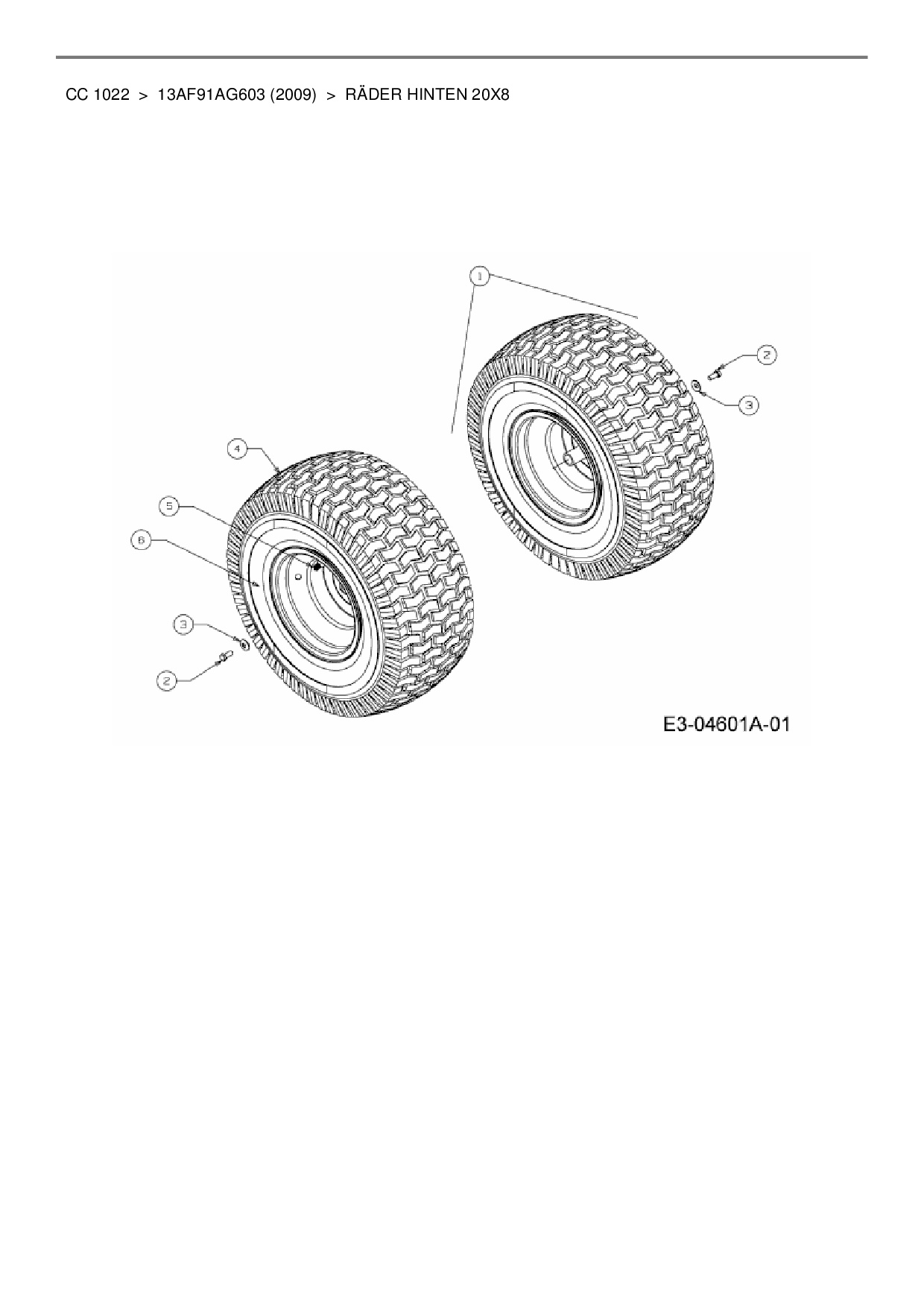 Ersatzteile für Rasentraktor Cub Cadet CC 1022 aus der Zeichnung Räder hinten 20x8: