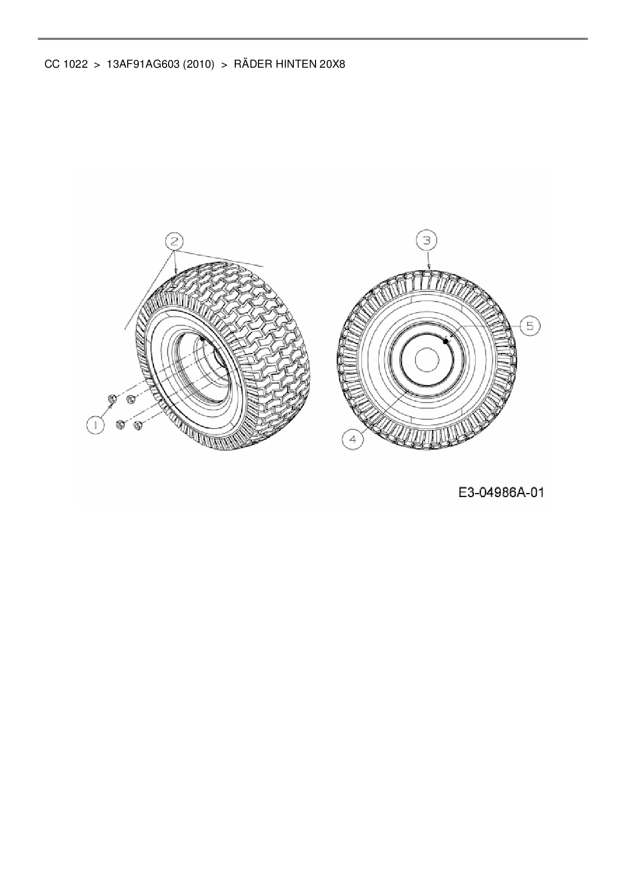 Ersatzteile für Rasentraktor Cub Cadet CC 1022 aus der Zeichnung Räder hinten 20x8: