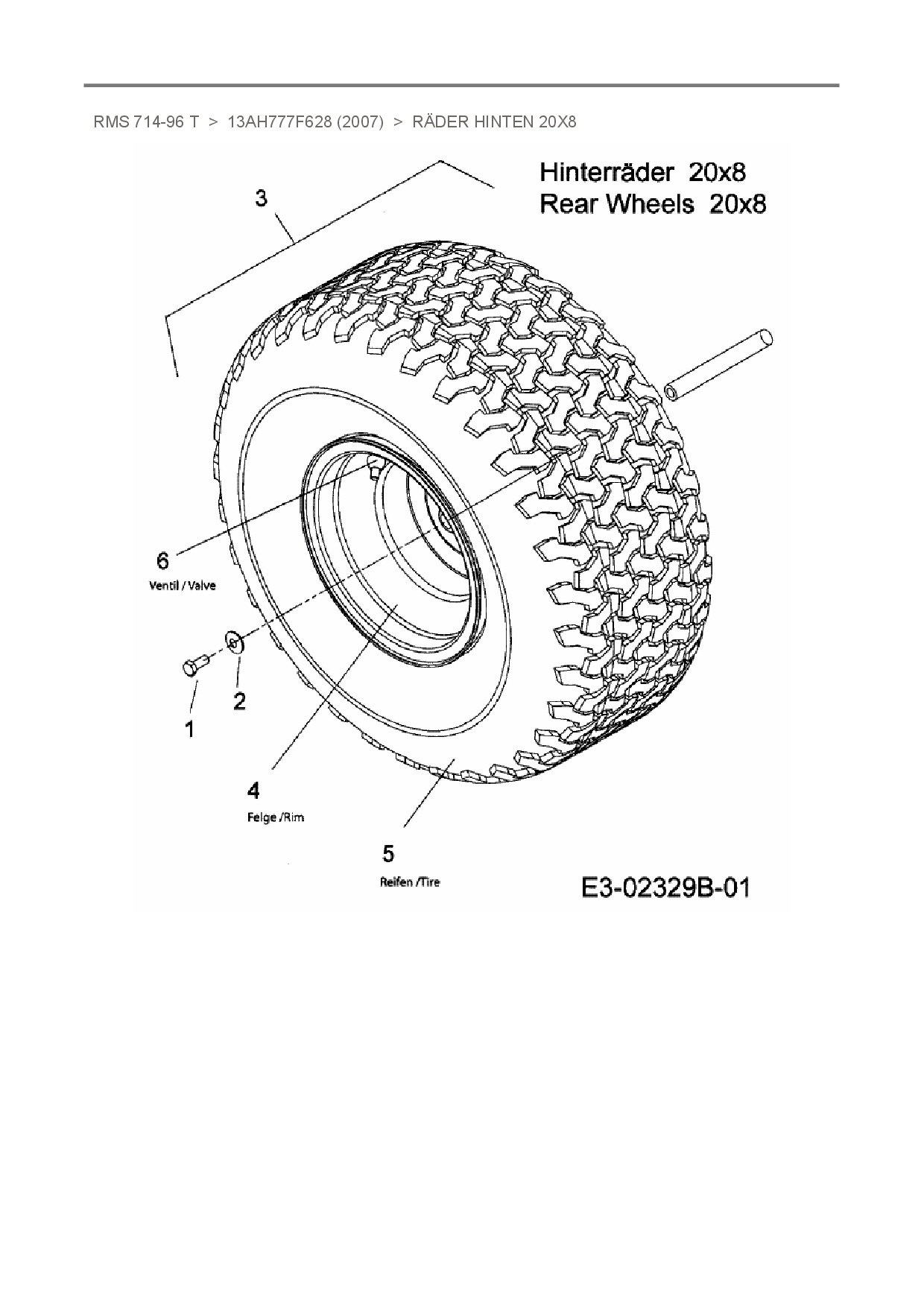 Ersatzteile für Rasentraktor Raiffeisen RMS 714-96 T aus der Zeichnung Räder hinten 20x8: