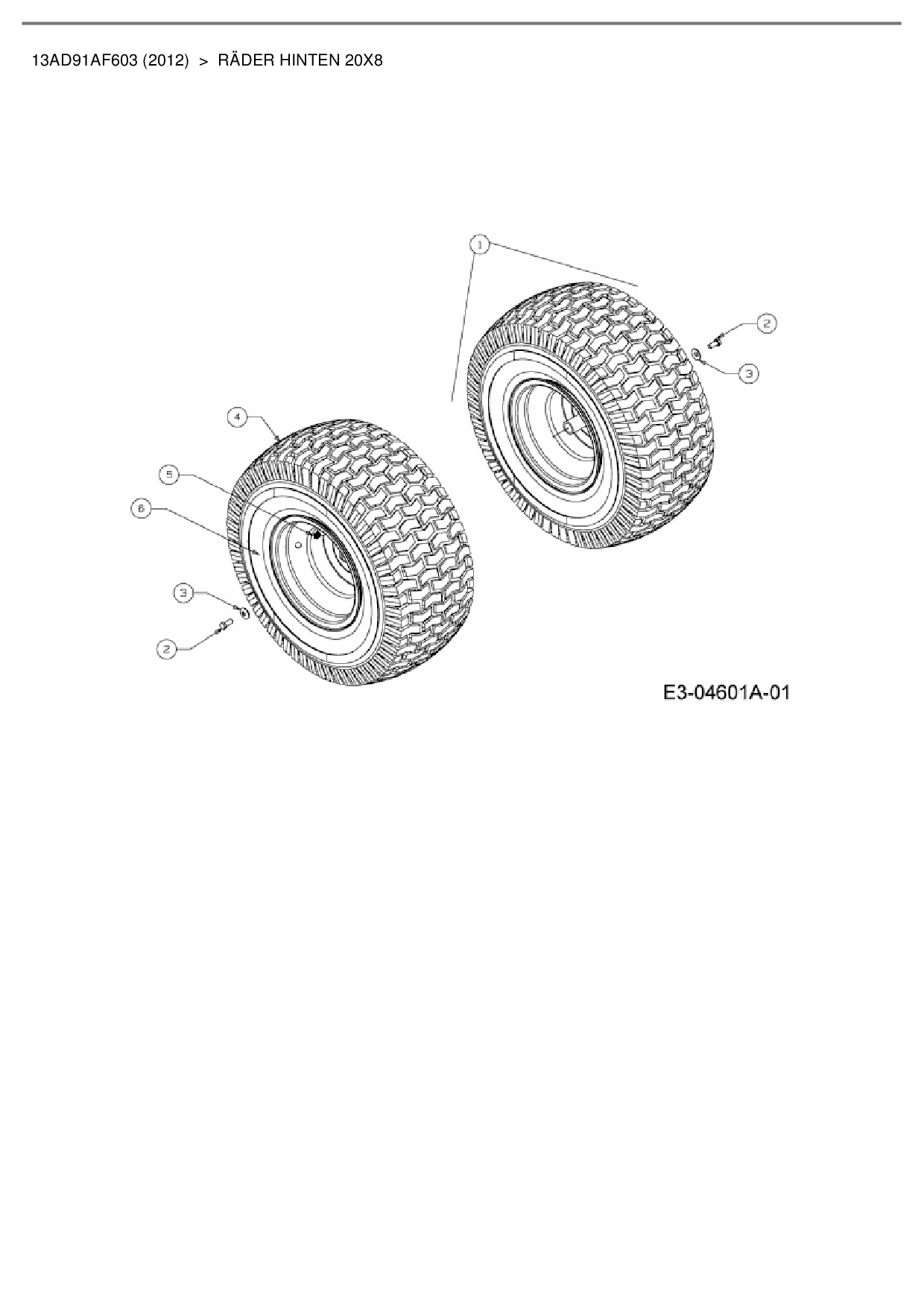 Ersatzteile für Rasentraktor Cub Cadet CC 1016 HF aus der Zeichnung Räder hinten 20x8: