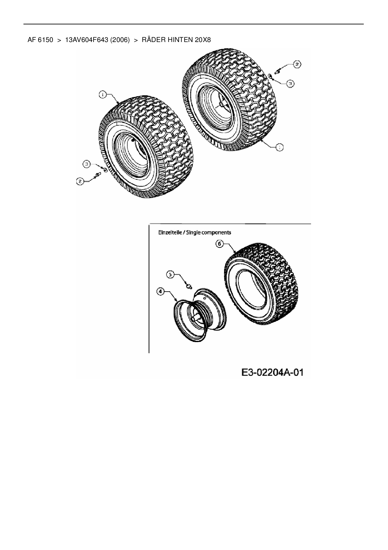 Ersatzteile für Rasentraktor Yard-Man AF 6150 aus der Zeichnung Räder hinten 20x8: