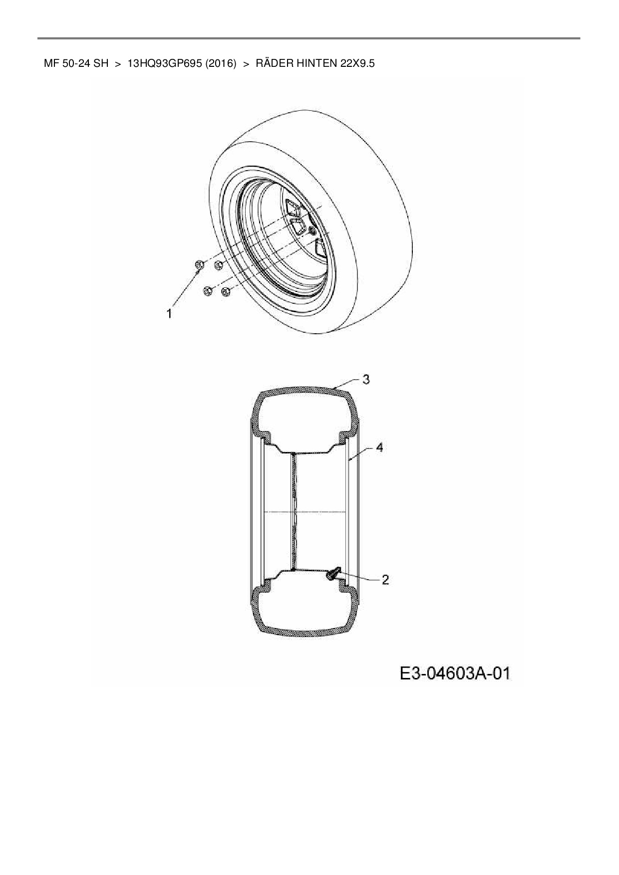 Ersatzteile für Rasentraktor Massey Ferguson MF 50-24 SH aus der Zeichnung Räder hinten 22x9.5: