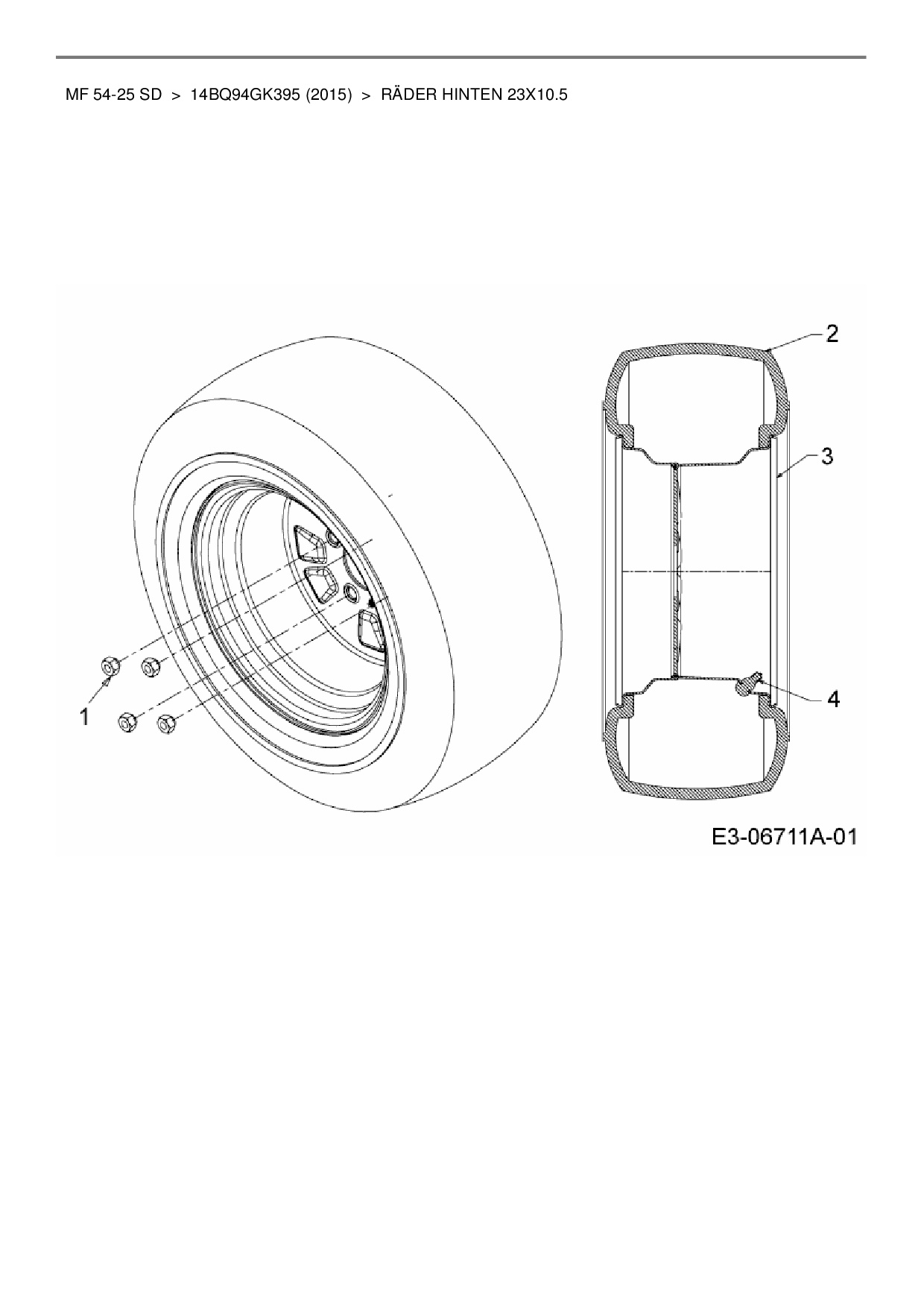 Ersatzteile für Gartentraktor Massey Ferguson MF 54-25 SD aus der Zeichnung Räder hinten 23x10.5: