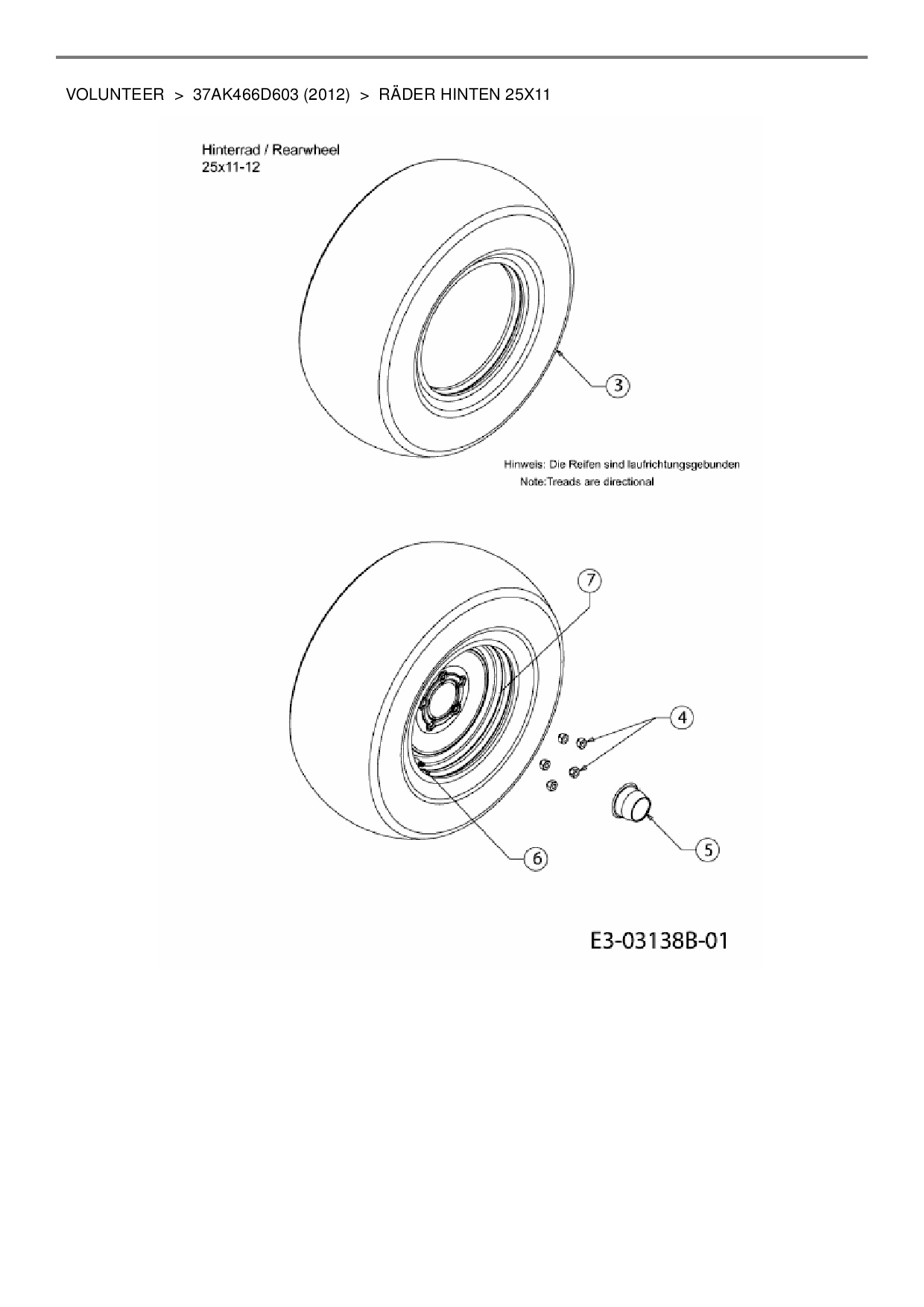 Ersatzteile für Utility Vehicle Cub Cadet Volunteer aus der Zeichnung Räder hinten 25x11: