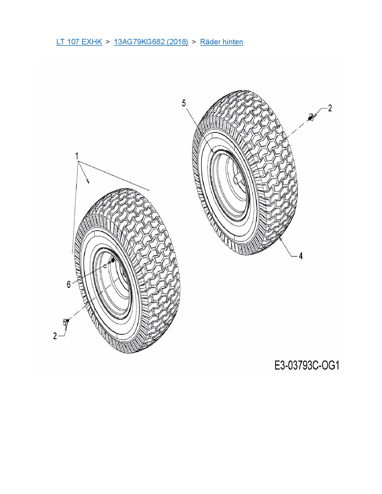 Ersatzteile für Rasentraktor MTD LT 107 EXHK aus der Zeichnung Räder hinten: