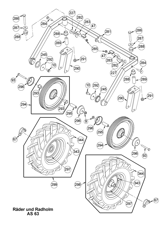 Hier finden Sie alle Ersatzteile von AS-Motor Allmäher AS 63 2T ES ab FNr. 027015120001 aus dem Zeichnungsblatt Räder und Radholm: