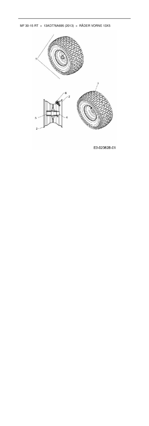Ersatzteile für Rasentraktor Massey Ferguson MF 30-15 RT aus der Zeichnung Räder vorne 13x5: