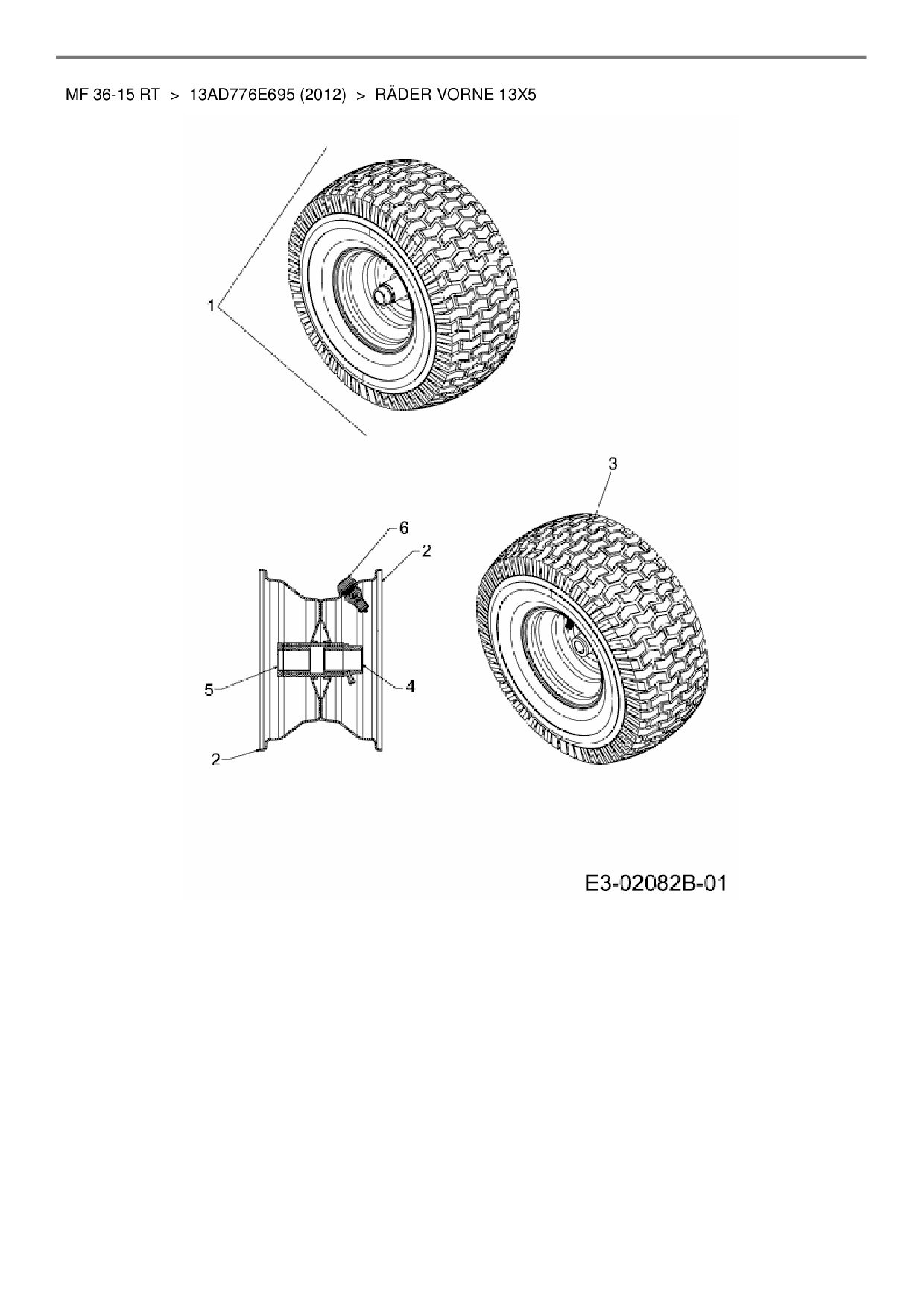 Ersatzteile für Rasentraktor Massey Ferguson MF 36-15 RT aus der Zeichnung Räder vorne 13x5: