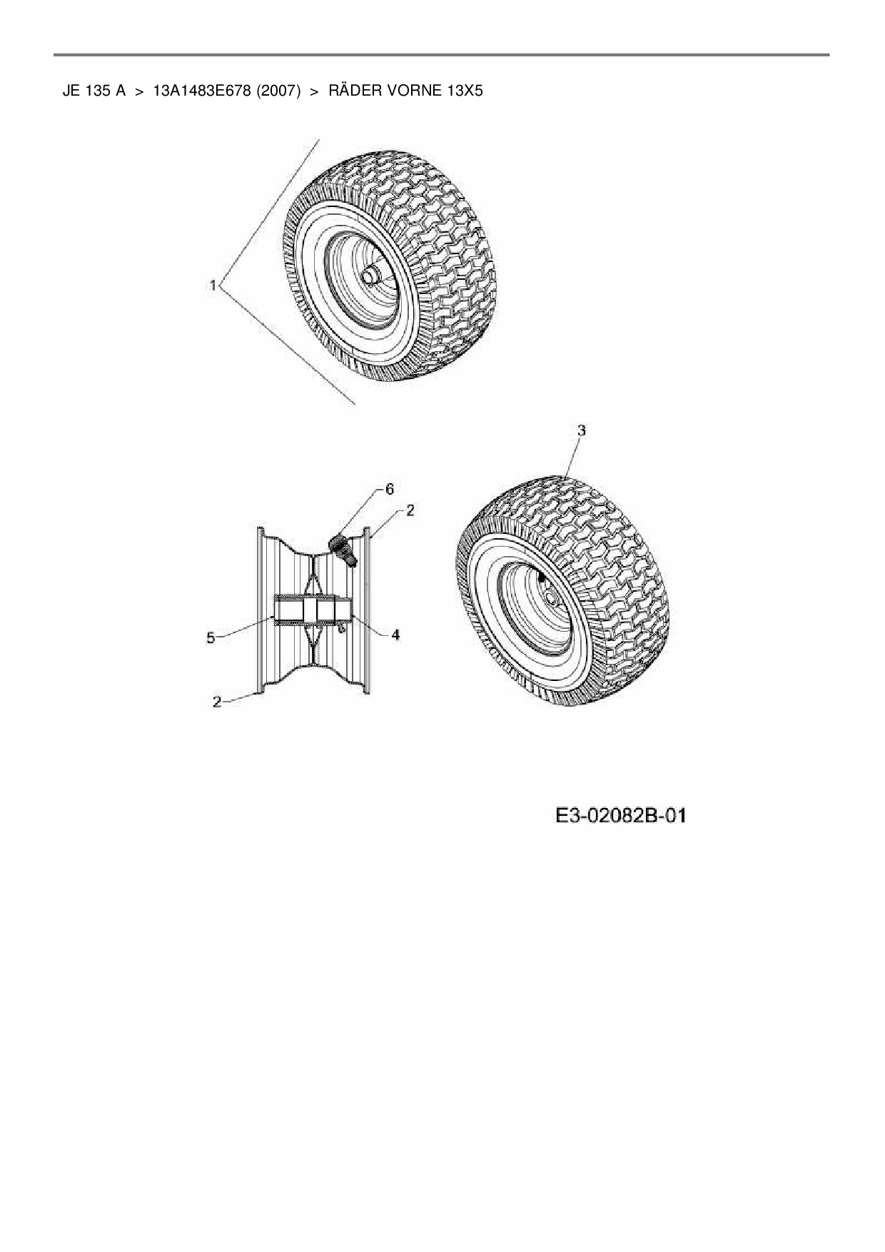 Ersatzteile für Rasentraktor MTD JE 135 A aus der Zeichnung Räder vorne 13x5: