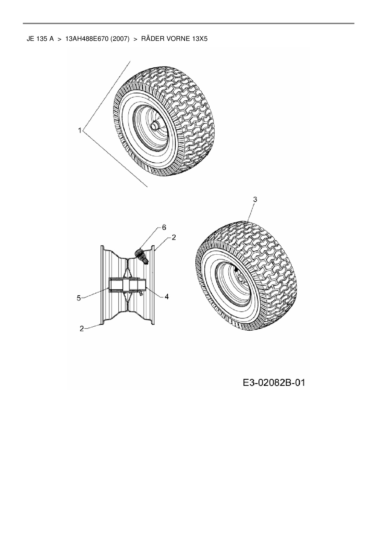 Ersatzteile für Rasentraktor MTD JE 135 A aus der Zeichnung Räder vorne 13x5: