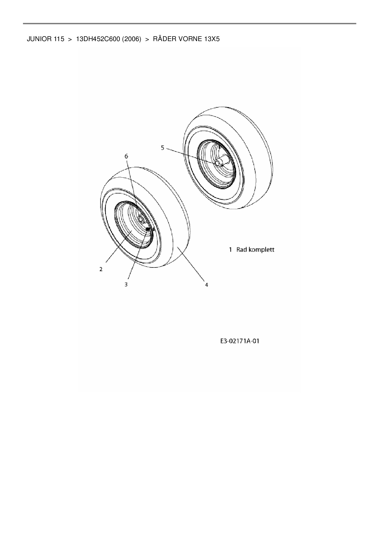Ersatzteile für Rasentraktor MTD Junior 115 aus der Zeichnung Räder vorne 13x5: