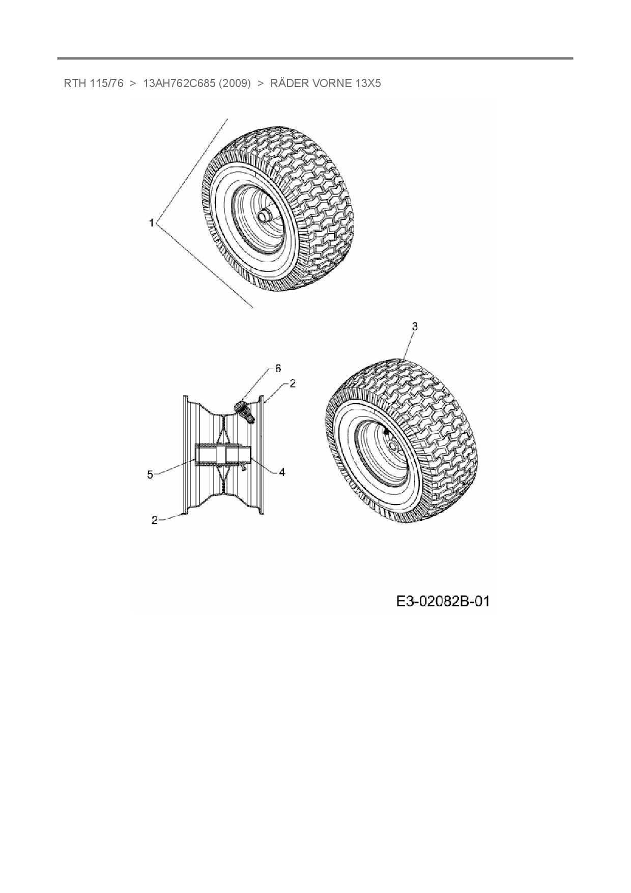 Ersatzteile für Rasentraktor Sunline RTH 115/76 aus der Zeichnung Räder vorne 13x5: