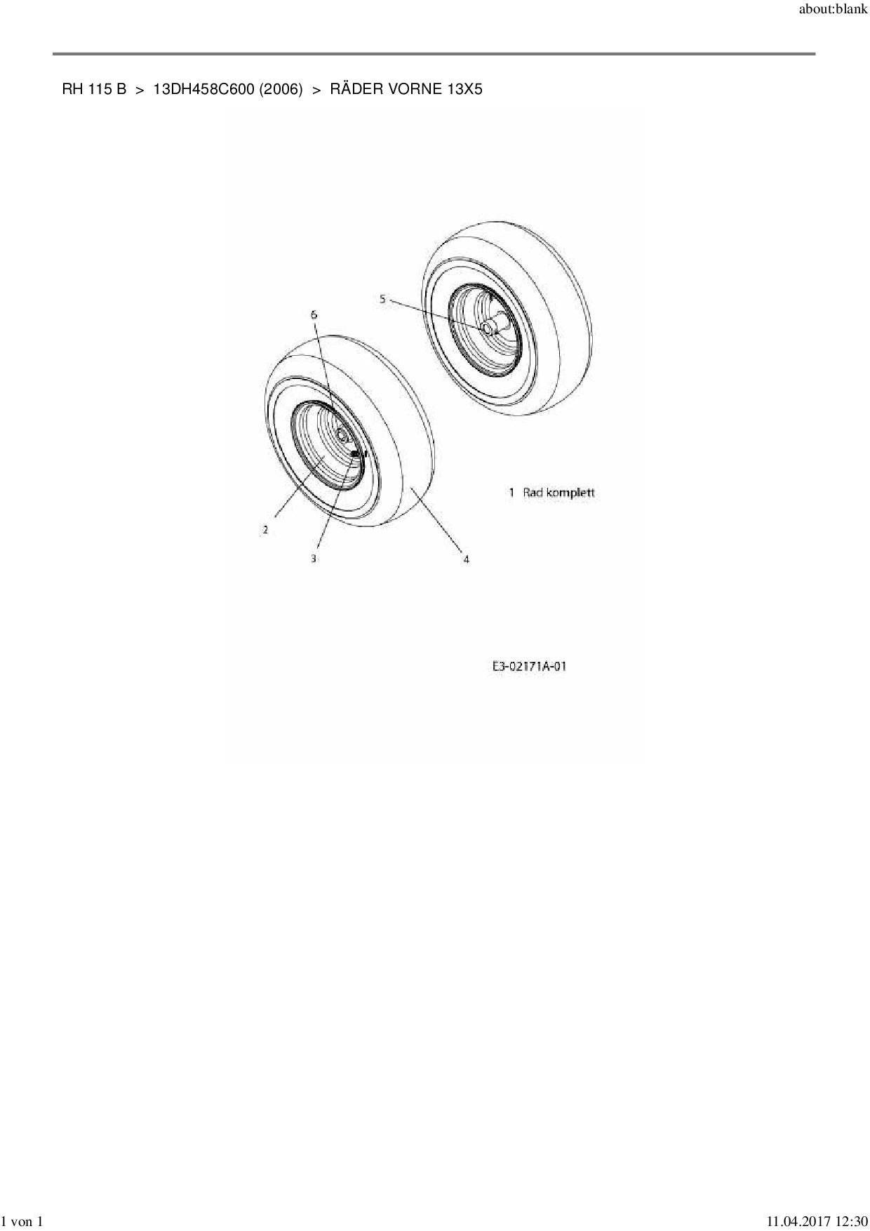 Ersatzteile für Rasentraktor MTD RH 115 B aus der Zeichnung Räder vorne 13x5: