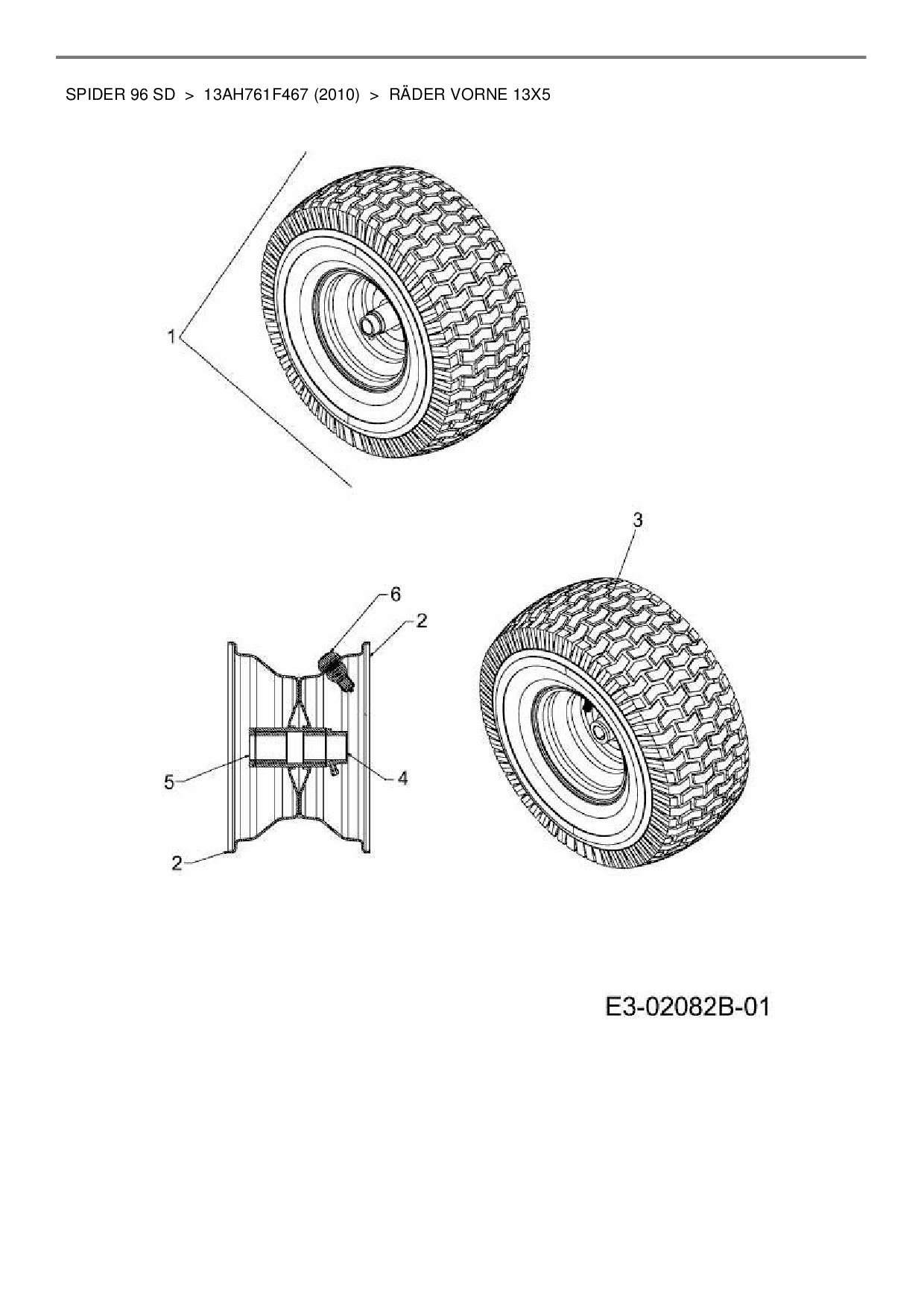 Ersatzteile für Rasentraktor MTD Spider 96 SD aus der Zeichnung Räder vorne 13x5: