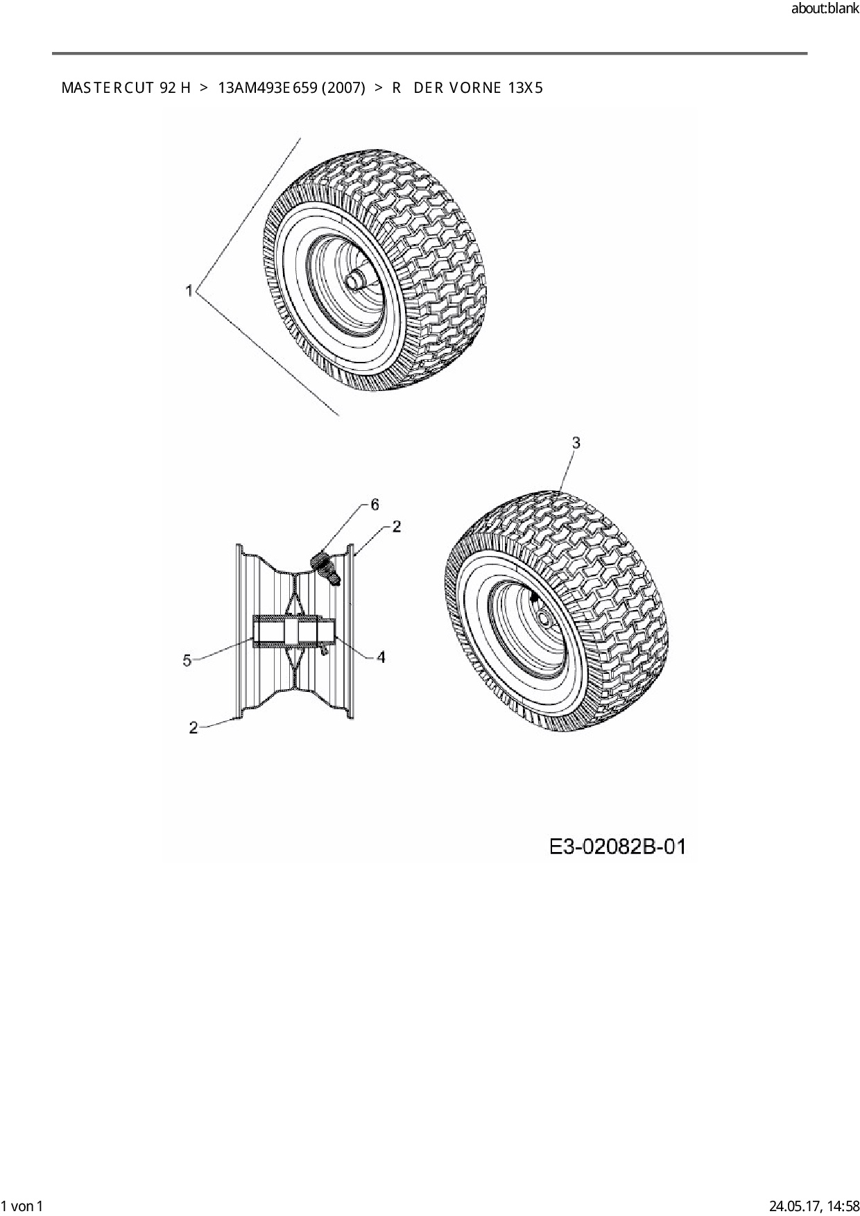 Ersatzteile für Rasentraktor Mastercut Mastercut 92 H aus der Zeichnung Räder vorne 13x5: