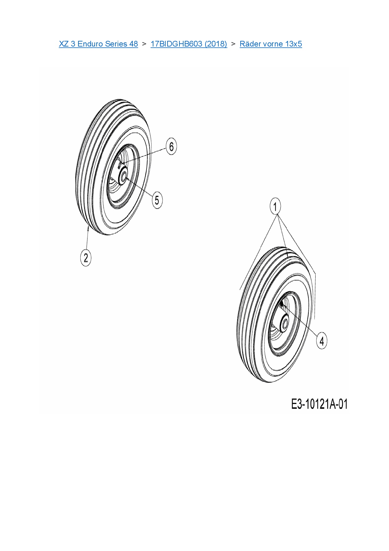 Ersatzteile für Zero Turn Cub Cadet XZ 3 Enduro Series 48 aus der Zeichnung Räder vorne 13x5:
