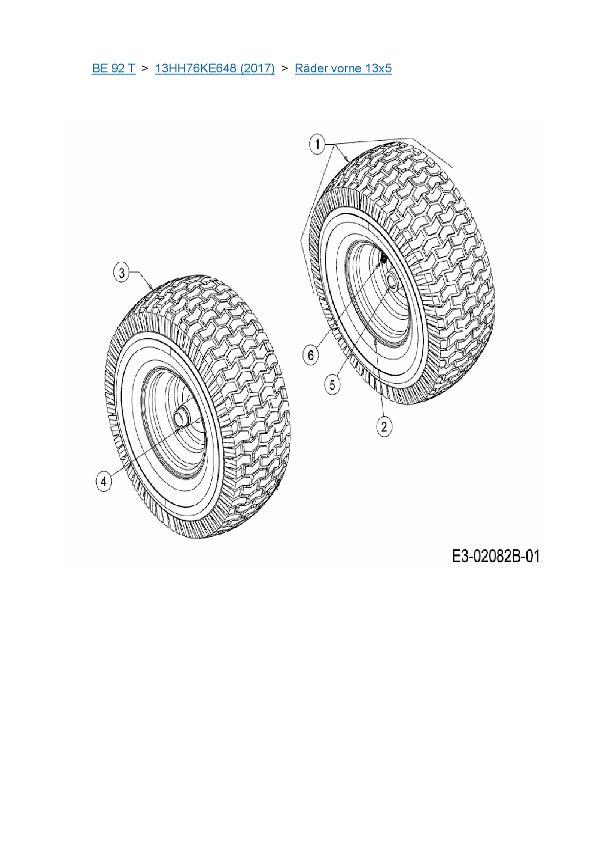 Ersatzteile für Rasentraktor MTD BE 92 T aus der Zeichnung Räder vorne 13x5: