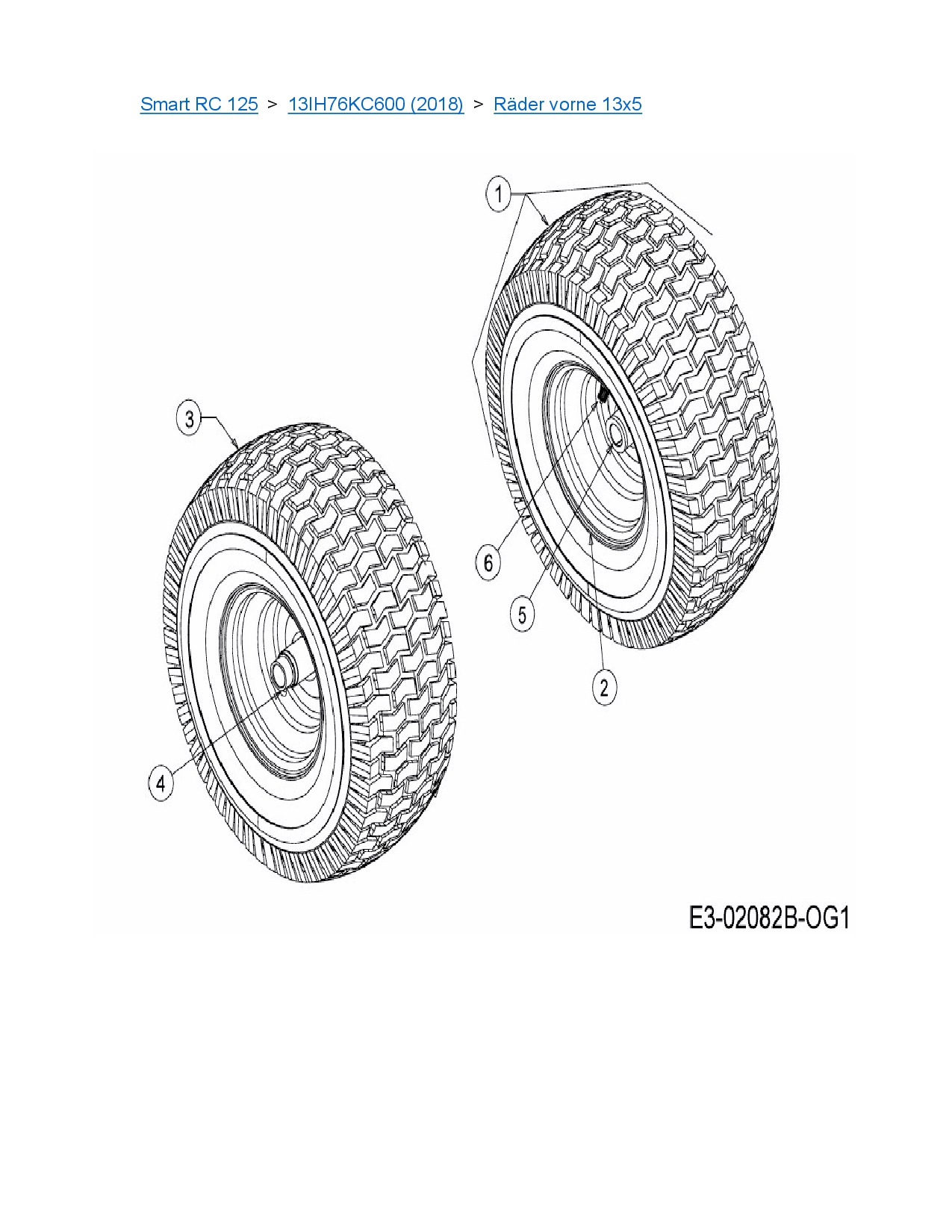 Ersatzteile für Rasentraktor MTD Smart RC 125 aus der Zeichnung Räder vorne 13x5: