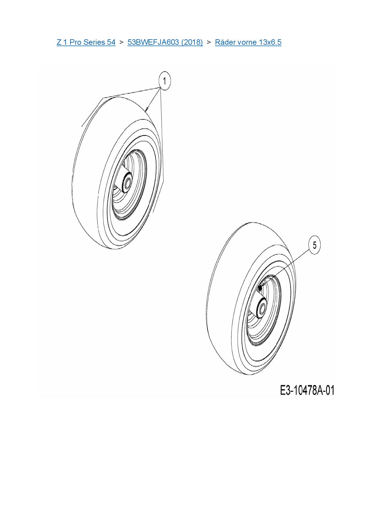 Ersatzteile für Zero Turn Cub Cadet Z 1 Pro Series 54 aus der Zeichnung Räder vorne 13x6.5:
