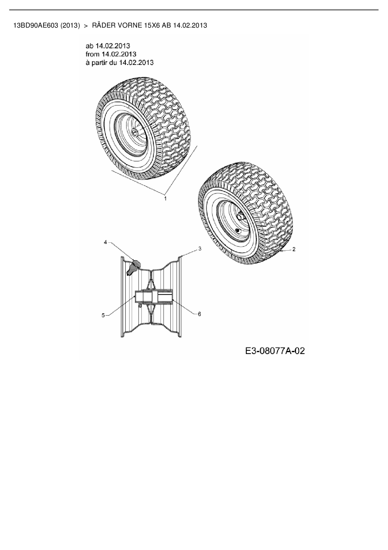 Ersatzteile für Rasentraktor Cub Cadet CC 1016 AE aus der Zeichnung Räder vorne 15x6 ab 14.02.2013: