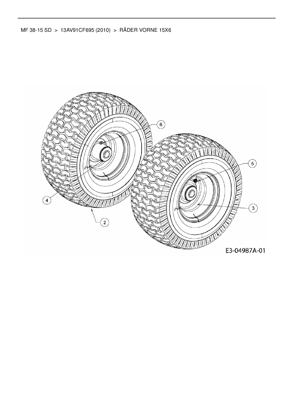 Ersatzteile für Rasentraktor Massey Ferguson MF 38-15 SD aus der Zeichnung Räder vorne 15x6:
