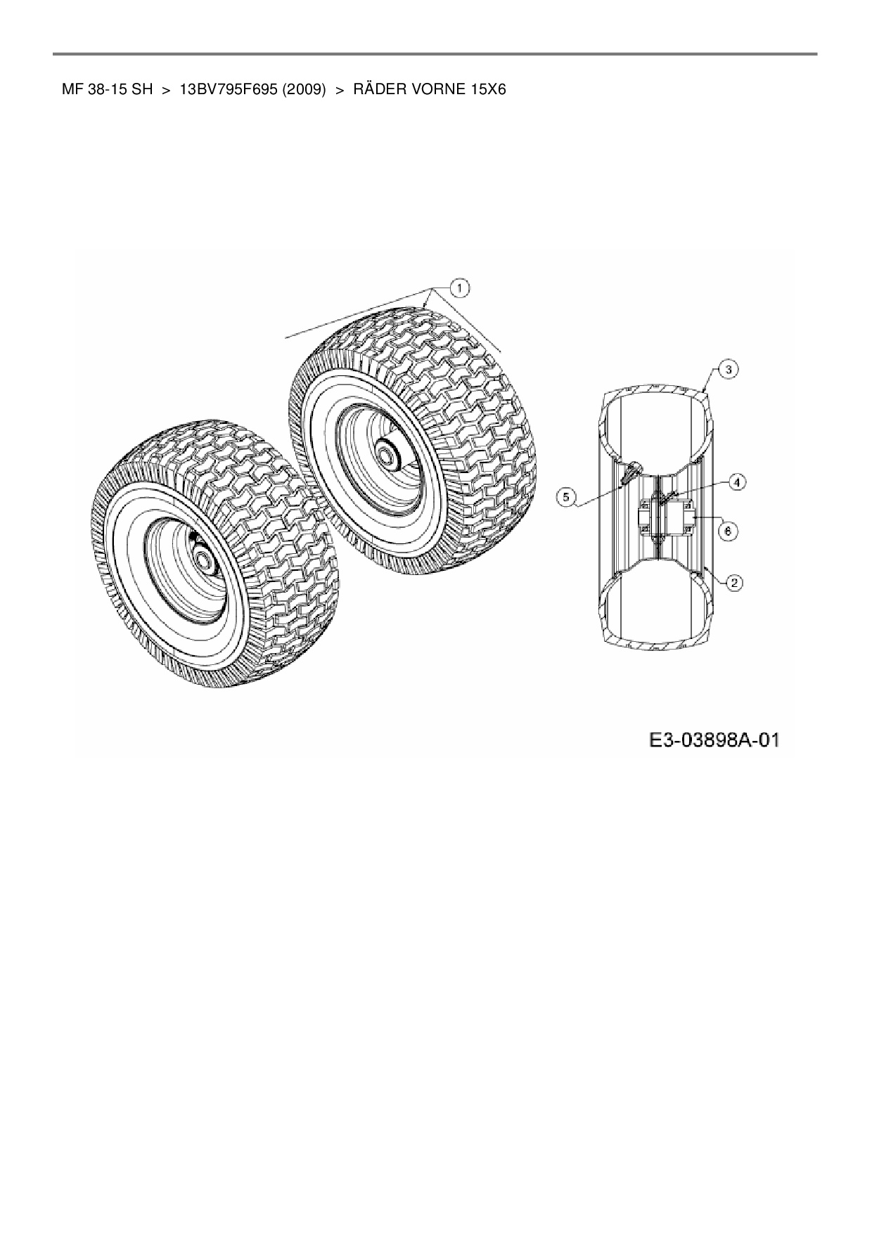 Ersatzteile für Rasentraktor Massey Ferguson MF 38-15 SH aus der Zeichnung Räder vorne 15x6: