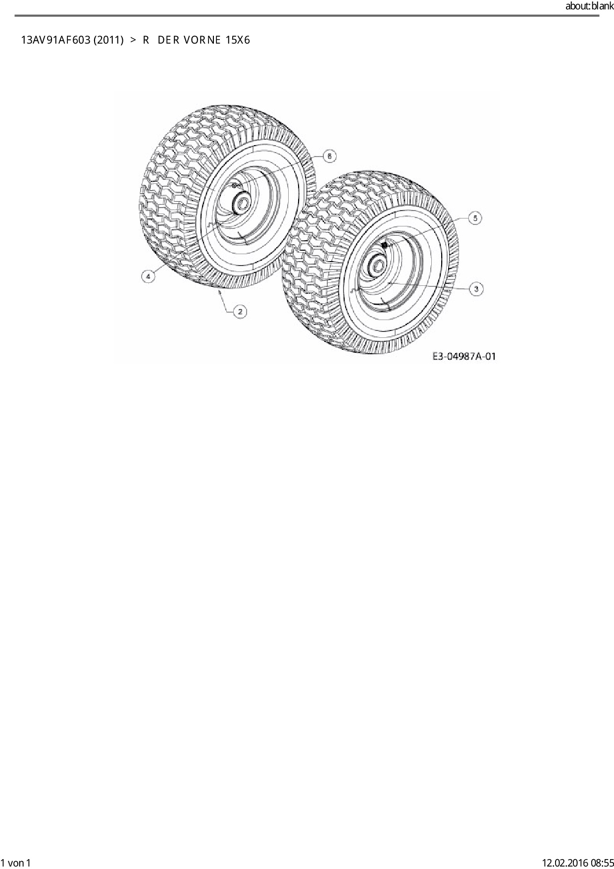 Ersatzteile für Rasentraktor Cub Cadet CC 1017 aus der Zeichnung Räder vorne 15x6:
