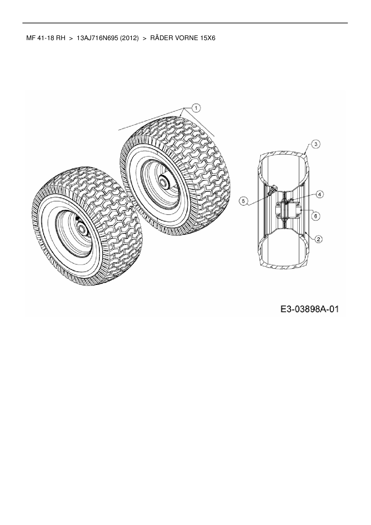 Ersatzteile für Rasentraktor Massey Ferguson MF 41-18 RH aus der Zeichnung Räder vorne 15x6: