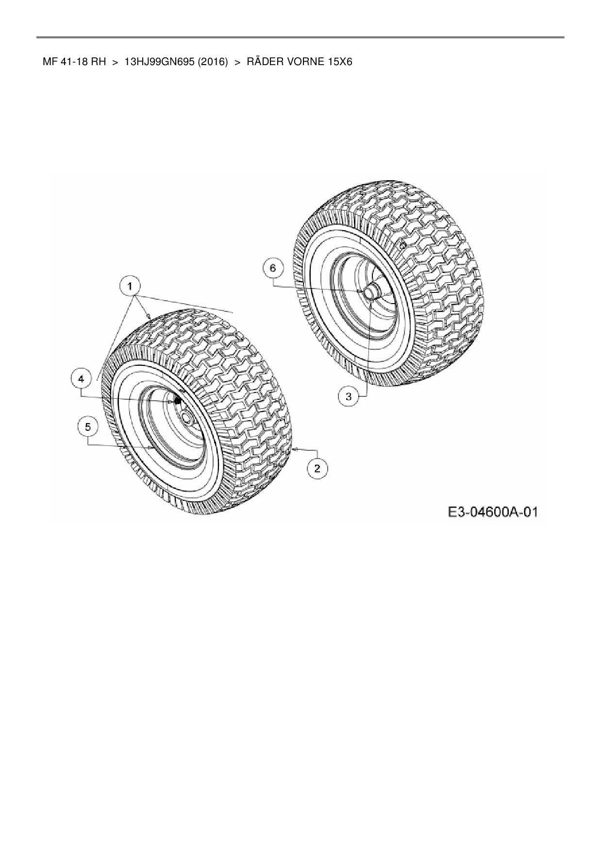 Ersatzteile für Rasentraktor Massey Ferguson MF 41-18 RH aus der Zeichnung Räder vorne 15x6: