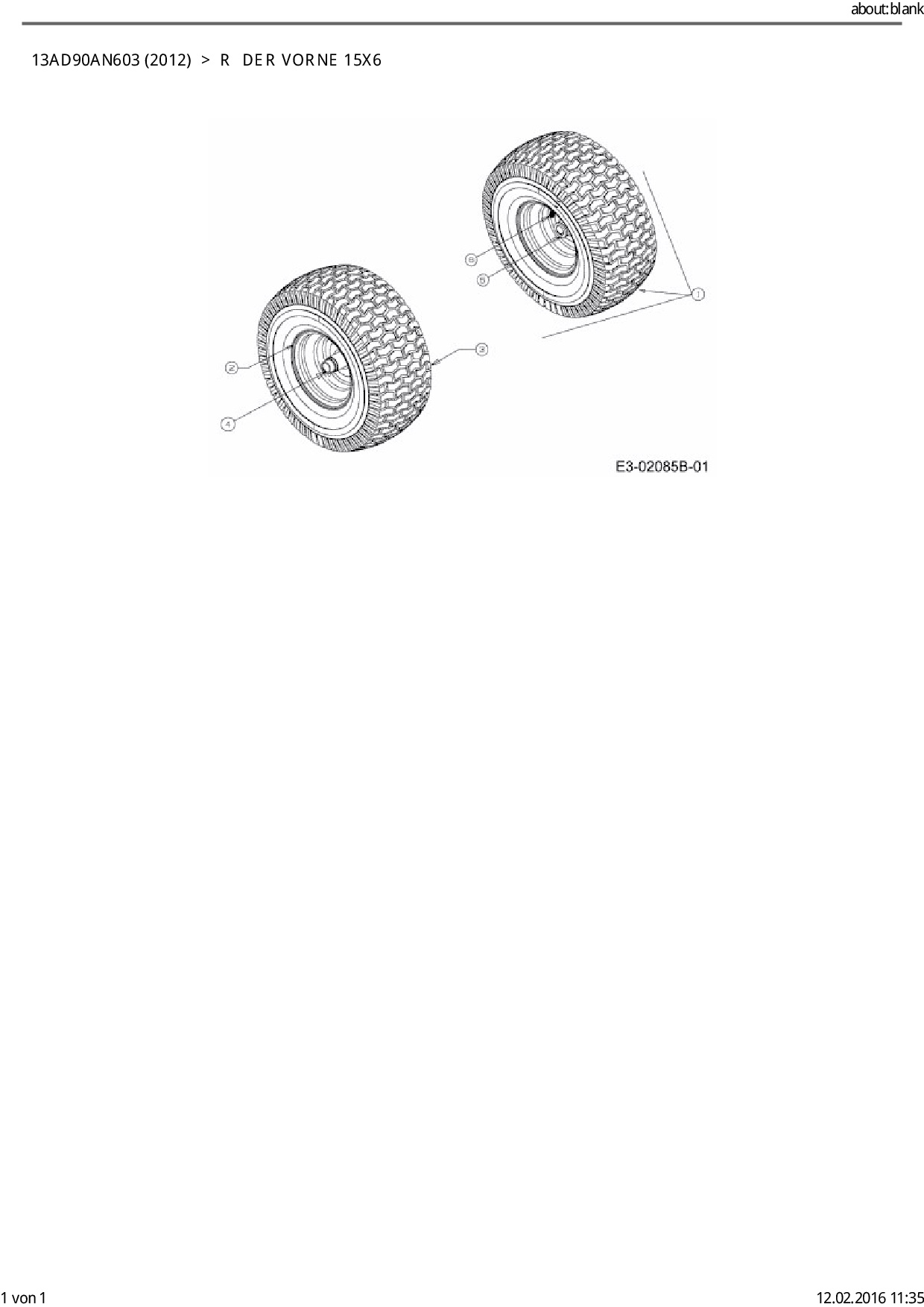 Ersatzteile für Rasentraktor Cub Cadet CC 1018 AN aus der Zeichnung Räder vorne 15x6: