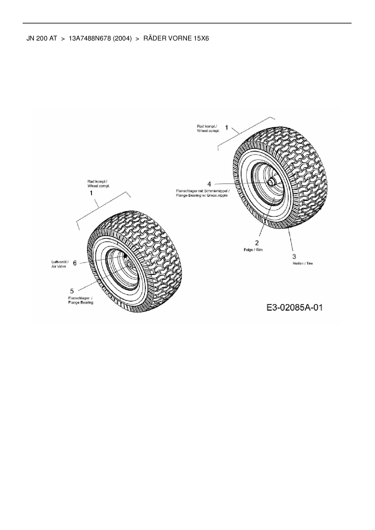 Ersatzteile für Rasentraktor MTD JN 200 AT aus der Zeichnung Räder vorne 15x6: