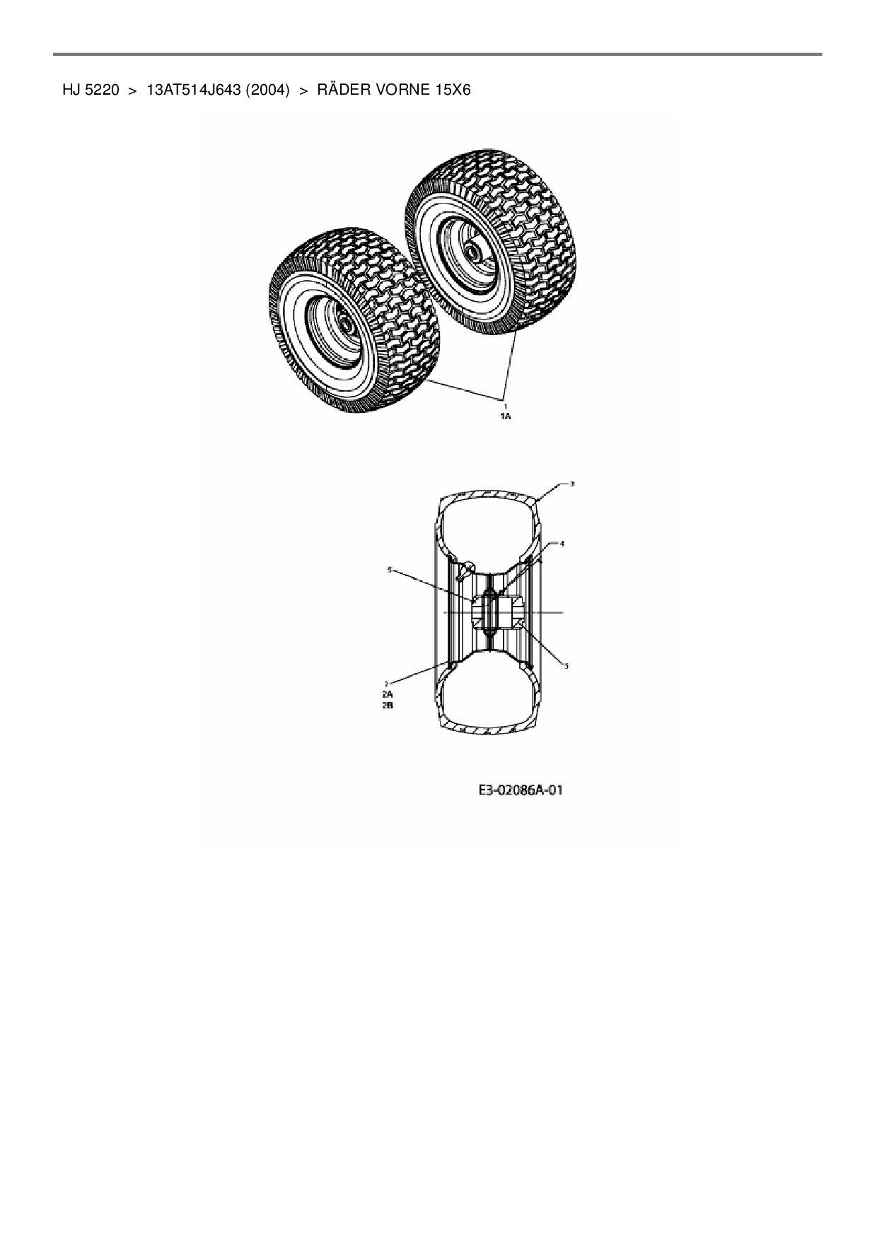 Ersatzteile für Rasentraktor Yard-Man HJ 5220 aus der Zeichnung Räder vorne 15x6: