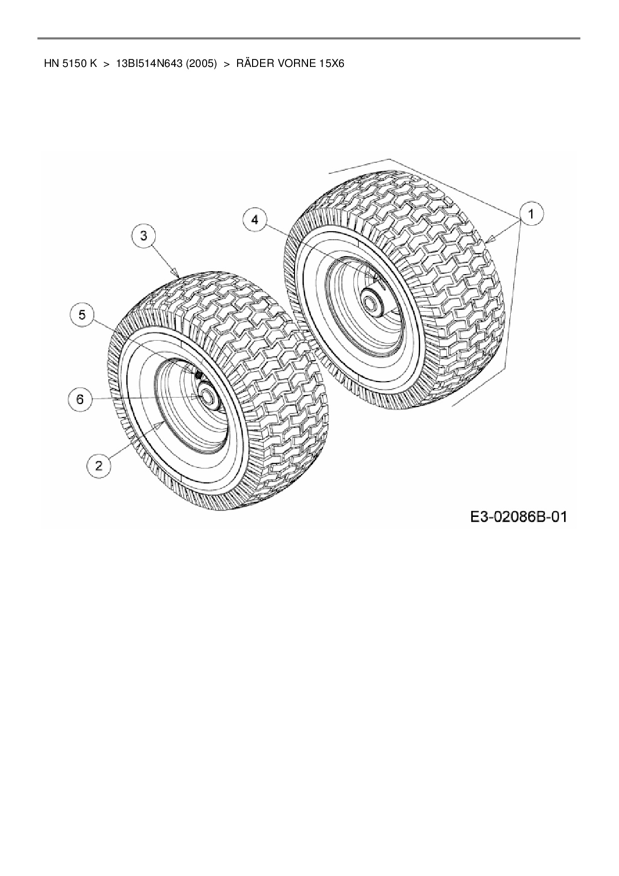 Download Ersatzteil-Zeichnung Yard-Man HN 5150 K Zeichnung Räder vorne 15x6 (PDF-Format)