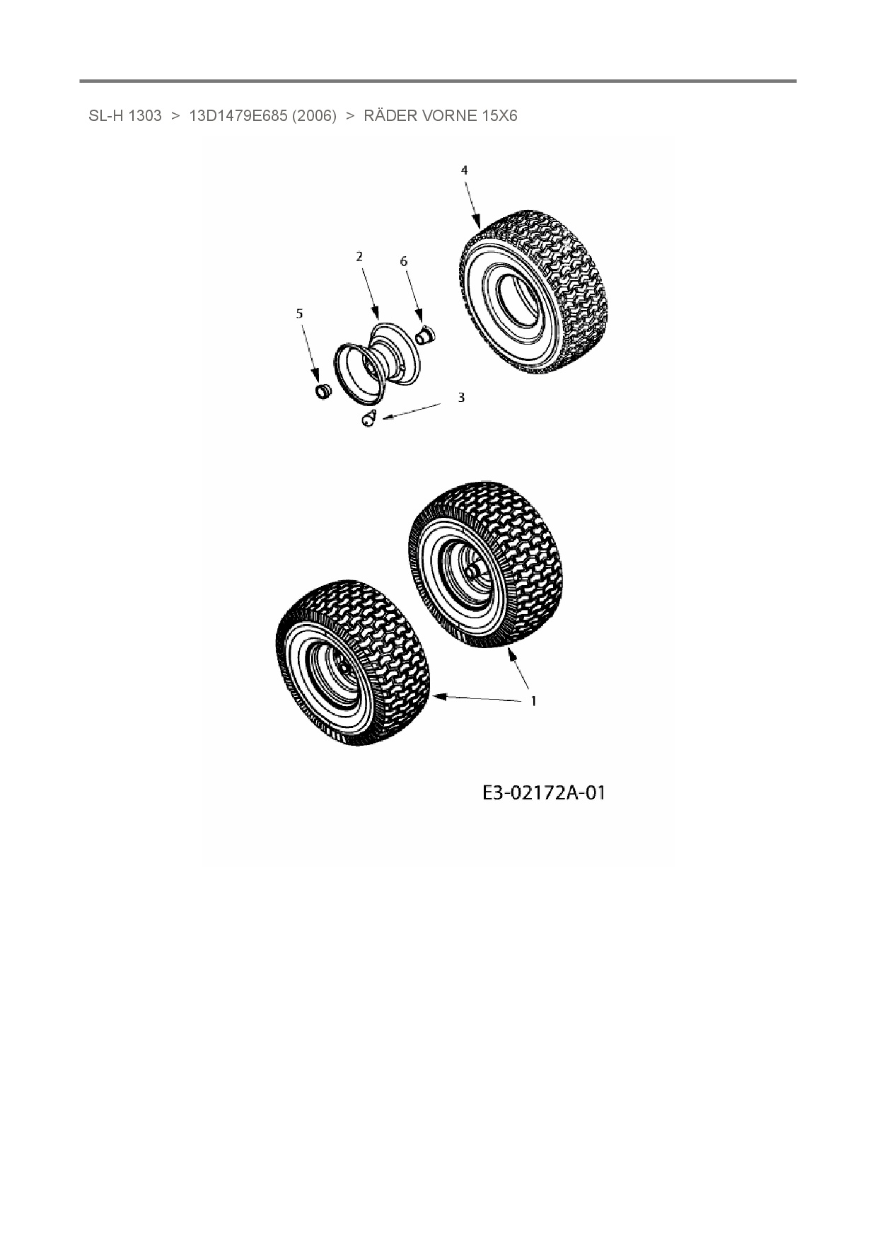 Ersatzteile für Rasentraktor Sunline SL-H 1303 aus der Zeichnung Räder vorne 15x6: