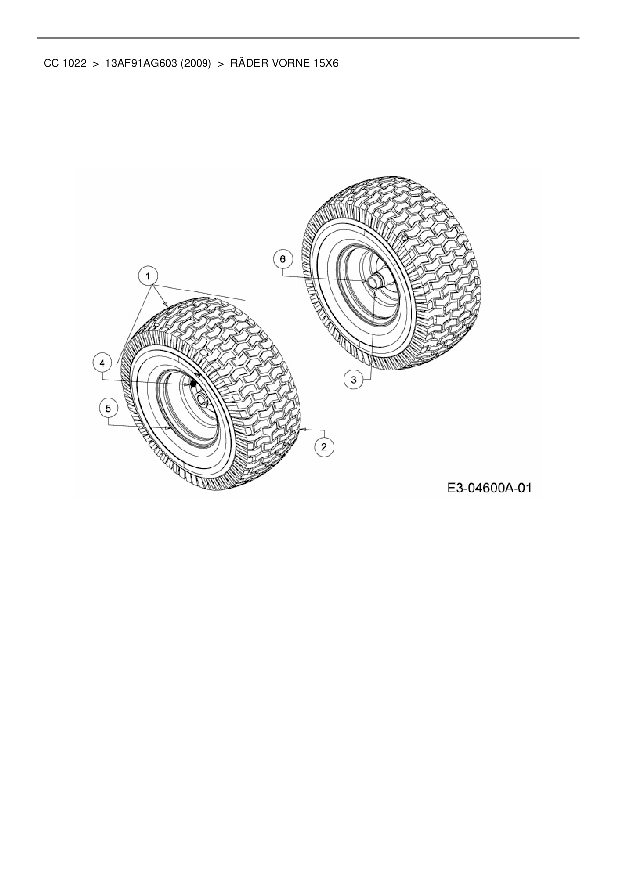 Ersatzteile für Rasentraktor Cub Cadet CC 1022 aus der Zeichnung Räder vorne 15x6: