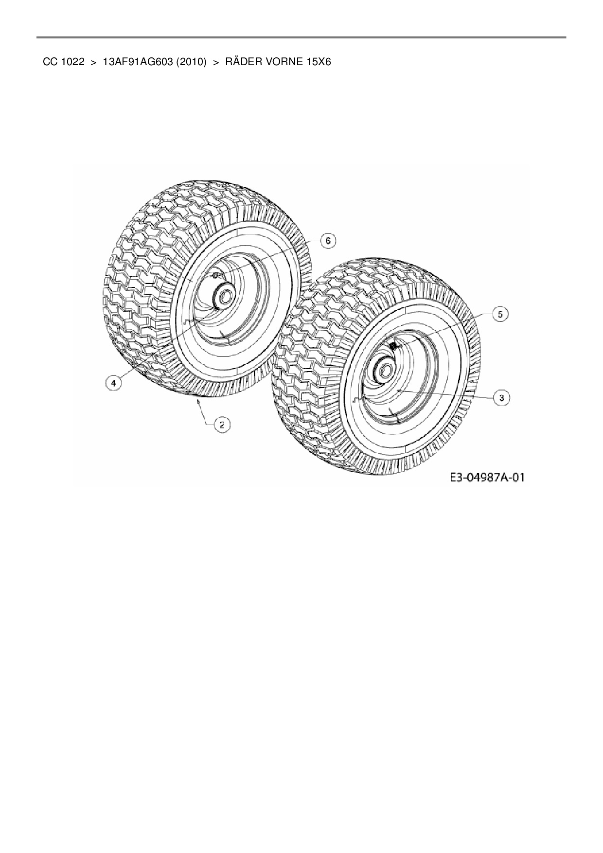Ersatzteile für Rasentraktor Cub Cadet CC 1022 aus der Zeichnung Räder vorne 15x6: