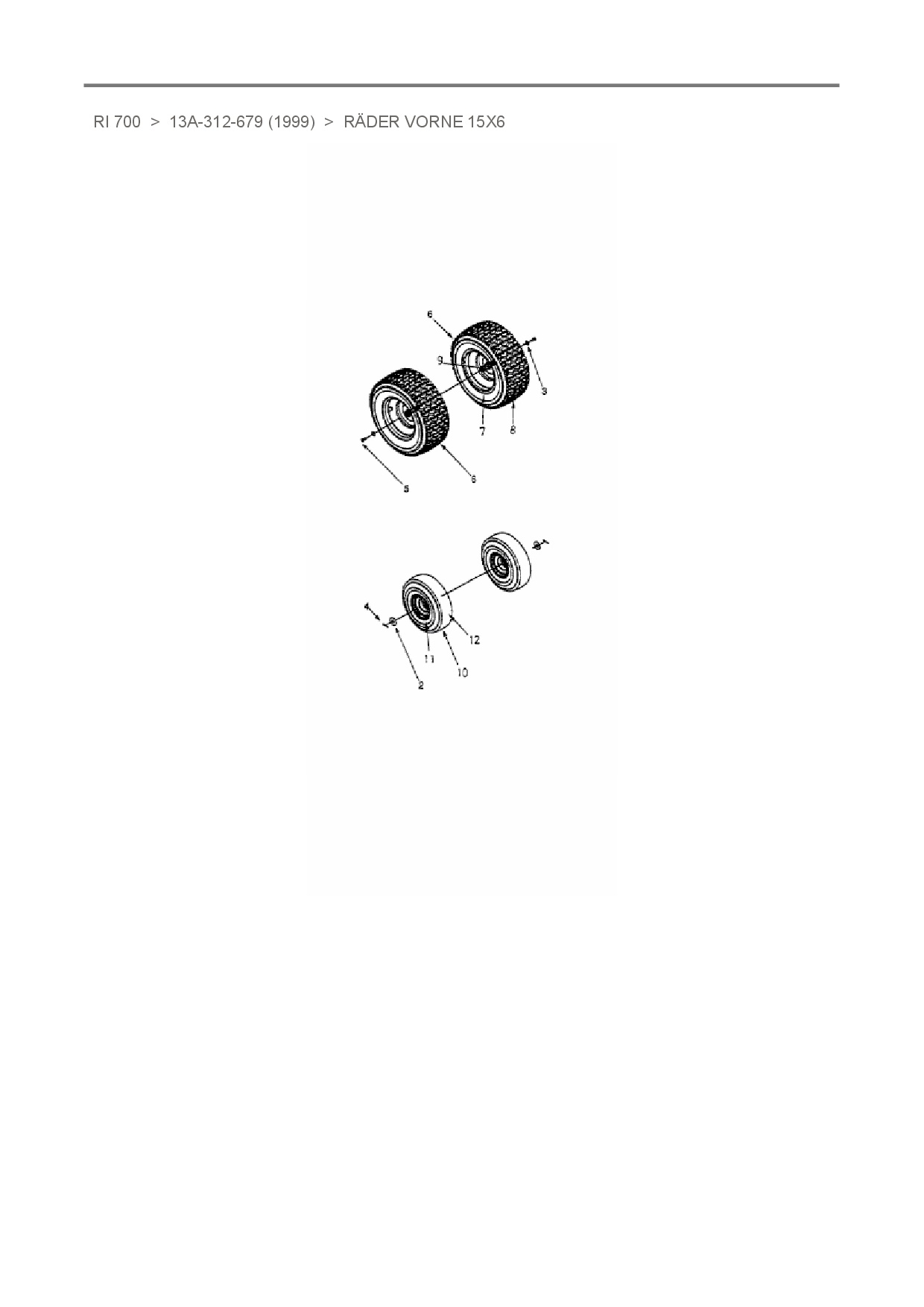 Ersatzteile für Rasentraktor White RI 700 aus der Zeichnung Räder vorne 15x6: