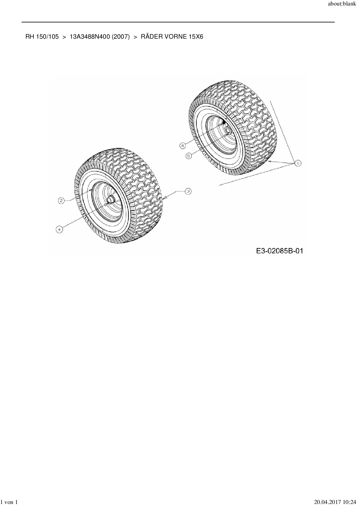 Ersatzteile für Rasentraktor MTD RH 150/105 aus der Zeichnung Räder vorne 15x6: