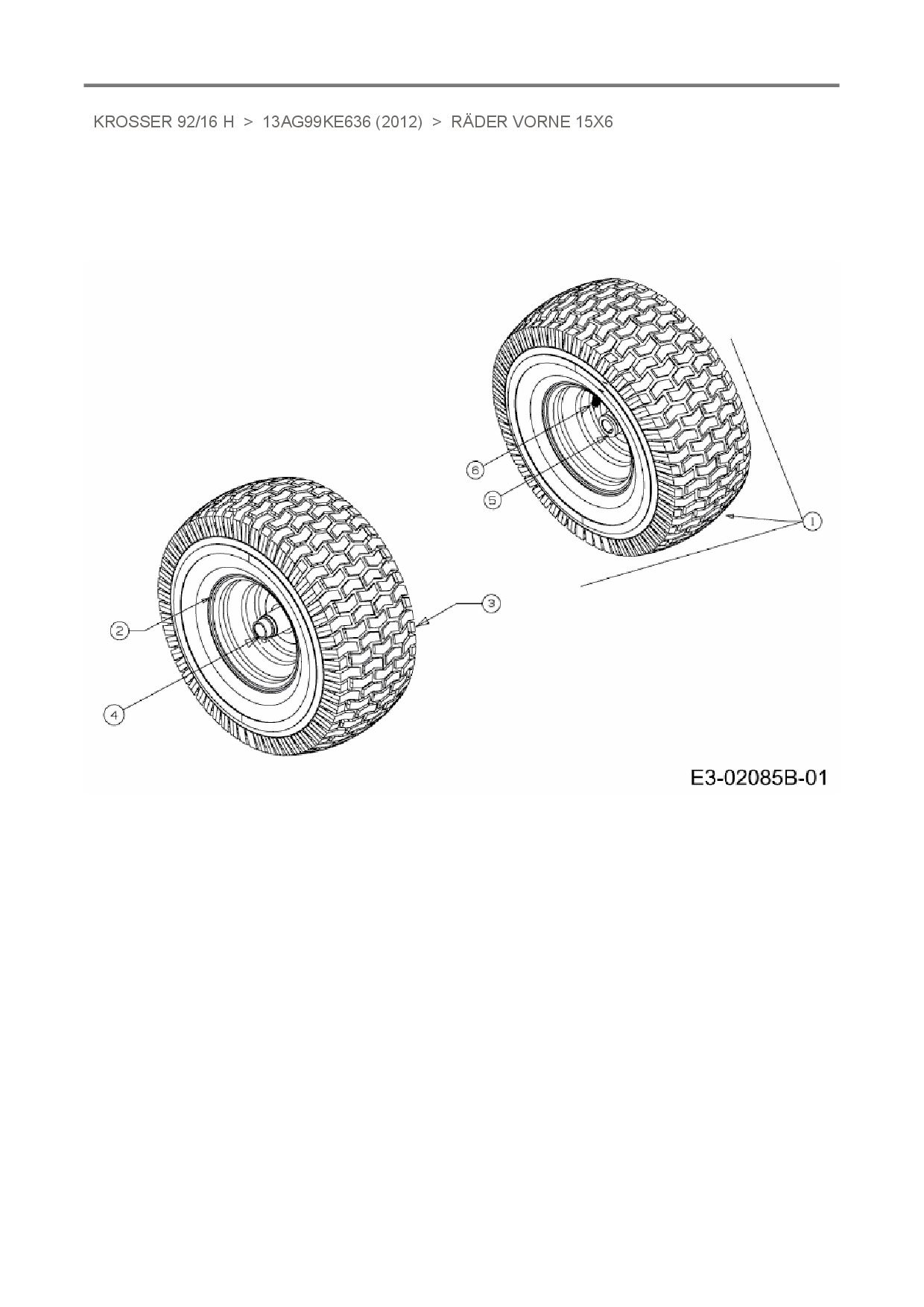 Ersatzteile für Rasentraktor Oleo-Mac Krosser 92/16 H aus der Zeichnung Räder vorne 15x6: